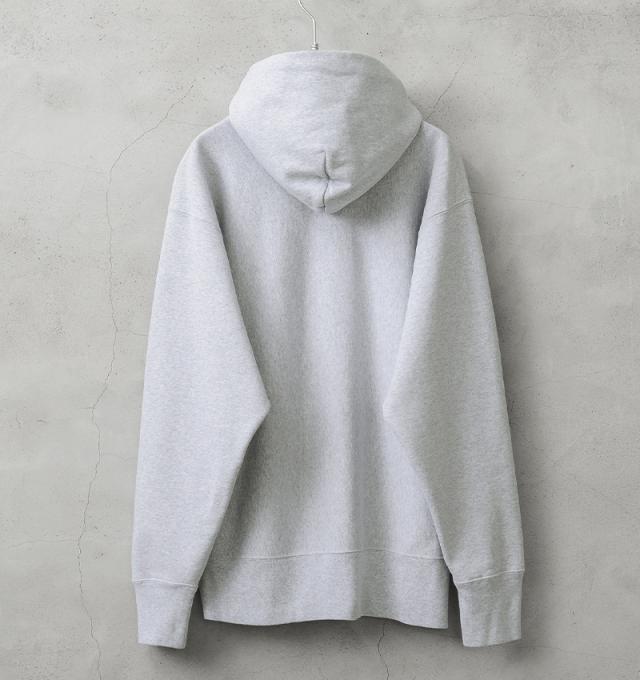 HOUSTONから、脇にリブの切り替えが入った定番スタイルの、裏起毛フーディースウェットが登場しました。ドライな質感のU.S.Aコットンを使用。再現性の難しい特徴的な杢感のグレーは糸から選定し、ビンテージスウェットを意識したアイテムです。