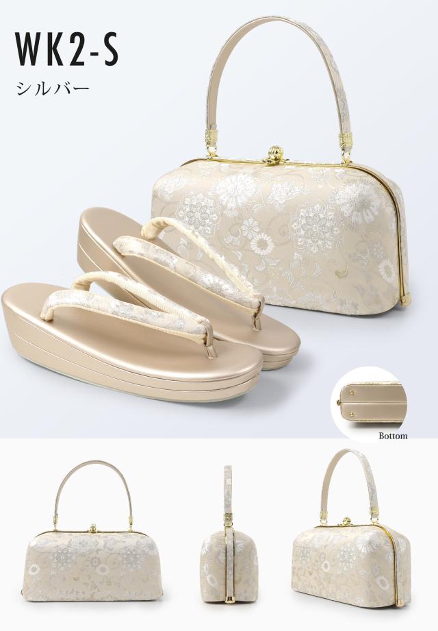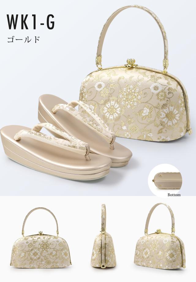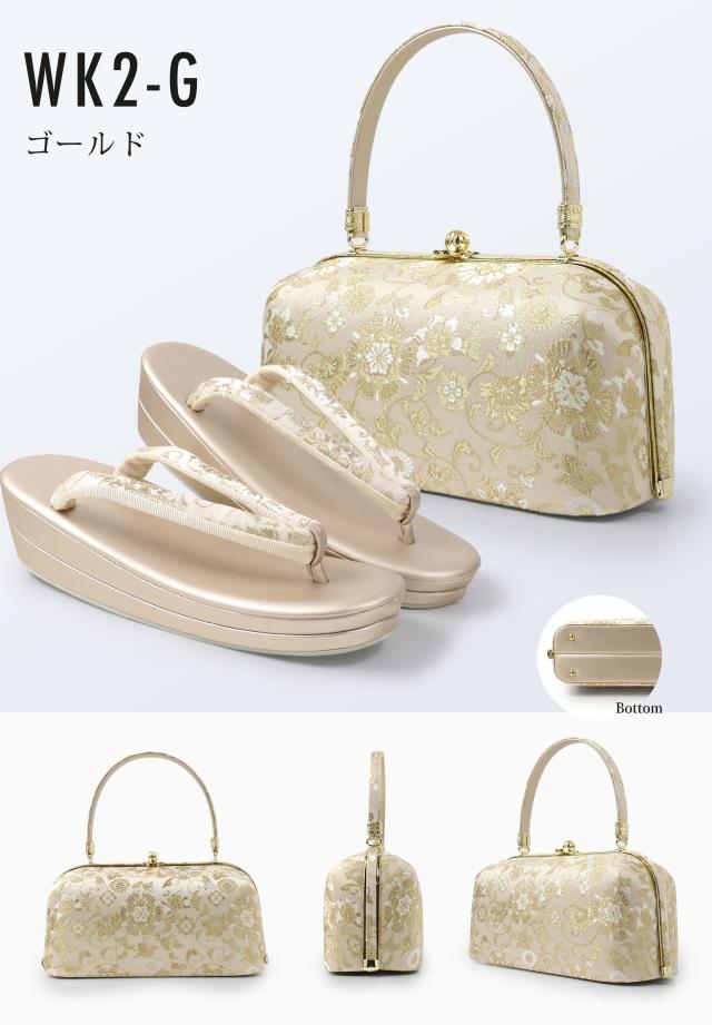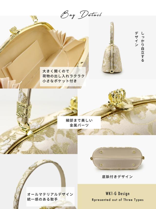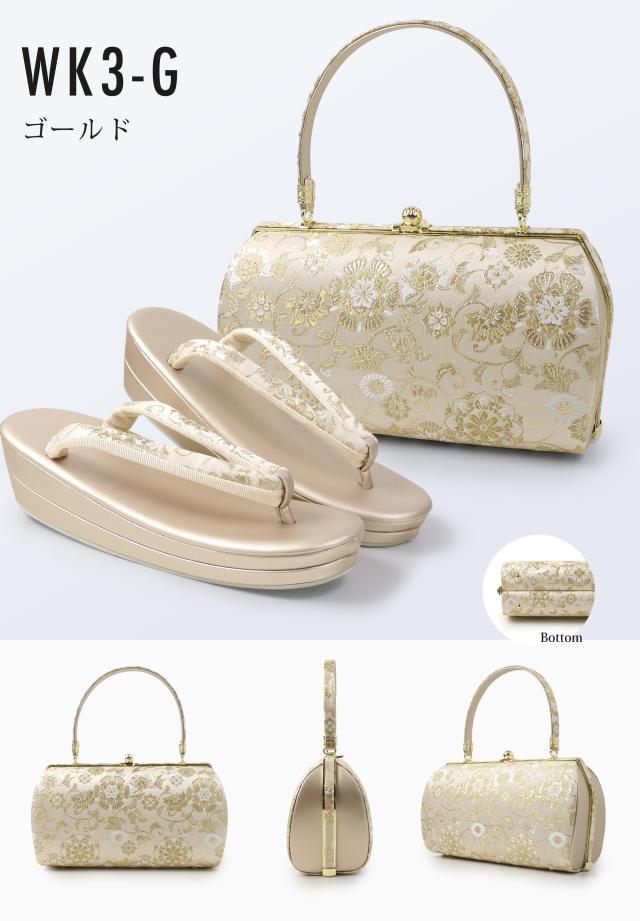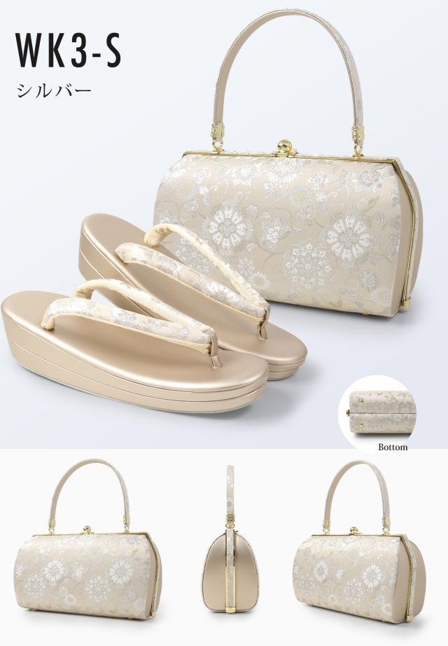 【レンタル】高級帯地 高級 唐草文様 草履バックセット 2色カラバリ 3タイプ 留袖 訪問着 振袖 フリー S LL フォーマル ゴールド シルバー 金 銀 礼装