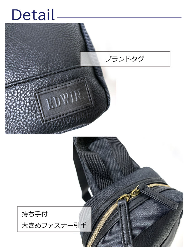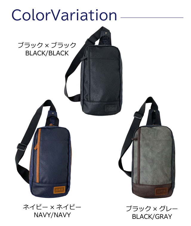 ■イメージ:おしゃれ カジュアル お洒落 かっこいい 通販 楽天 おすすめ 人気 売れ筋 ブランド 無地 黒 ブラック グレー ネイビー 紺 ブランド エドウィン EDWIN メンズバッグ レディースバッグ メンズバック 使いやすい 軽い 軽量 ボディーバッグ ボディーバック
