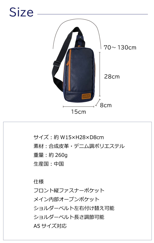 ![]() ![]() ![]() ![]() ![]() ![]() ・EDWIN エドウィン 軽量で使いやすいデザインが特徴です。a5サイズのボディバッグは、日常の必需品をしっかり収納できるコンパクトさが魅力です。 ブラックとネイビーの落ち着いた色合いは、どんなスタイルにも合わせやすく、中学生から大人まで幅広い年齢層におすすめです。