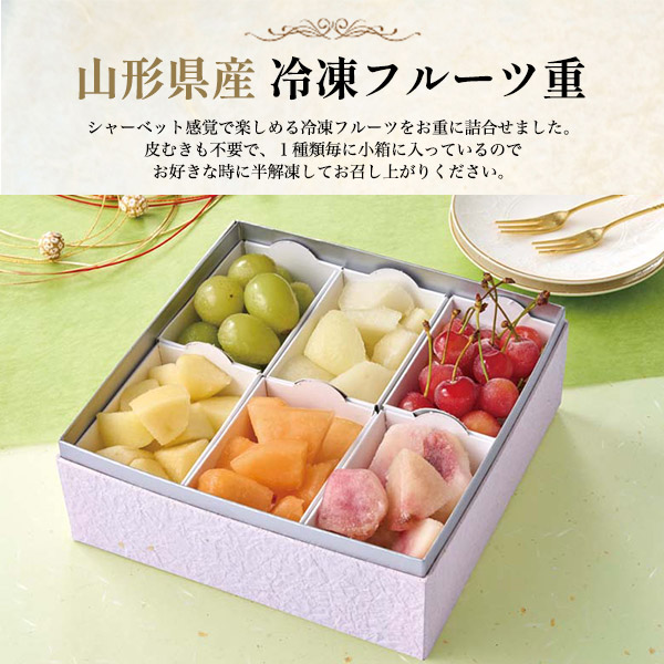 冷凍フルーツ重 山形県産 果物 詰合せ 1段重 フルーツ シャーベット おせち 12/29〜12/30 お届け予定 【ご注文締め切り:12/16】 冷凍フルーツ 盛り合わせ さくらんぼ メロン 白桃 りんご ラフランス シャインマスカット お正月 グルメ おせち料理 お節 デザート