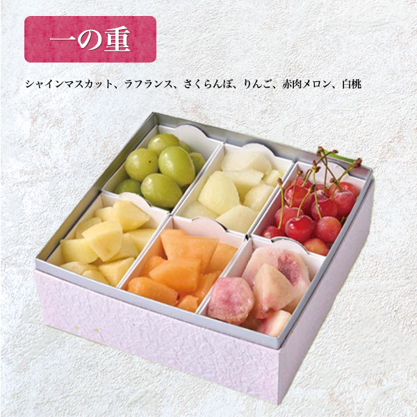 シャーベット感覚で楽しめる冷凍フルーツをお重に詰合せました。