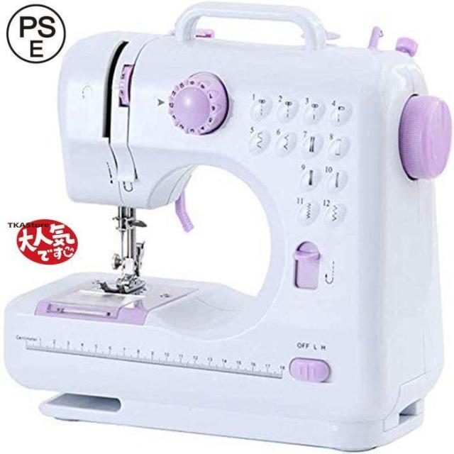 電動ミシン コンパクト 小型ミシン 家庭用ミシン 初心者 12種類の縫い目 フットコントローラー LED手元ランプ付き ACアダプタと単三電池