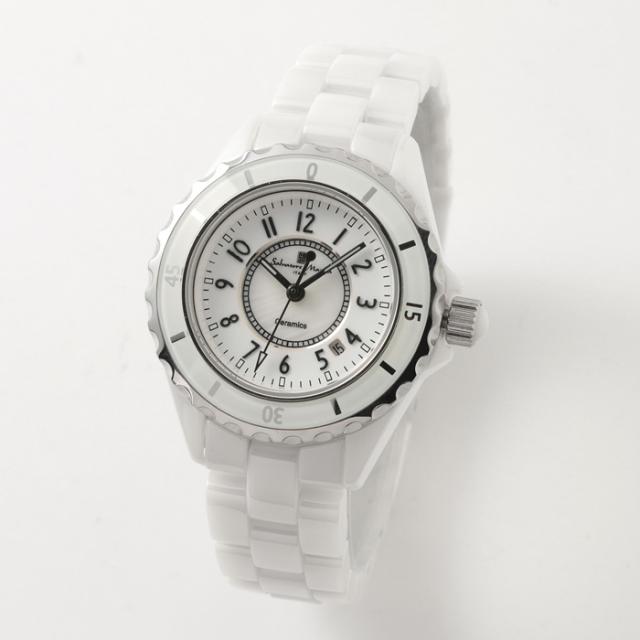 Salvatore Marra サルバトーレマーラ 腕時計 レディース セラミックウォッチ クォーツムーブメント SM25151-WHA ホワイト アラビアインデックス 3気圧防水 日付表示 回転ベゼル