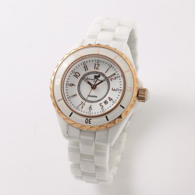 Salvatore Marra サルバトーレマーラ 腕時計 レディース セラミックウォッチ クォーツムーブメント SM25151-PGWHA ピンクゴールド×ホワイト アラビアインデックス 3気圧防水 日付表示 回転ベゼル