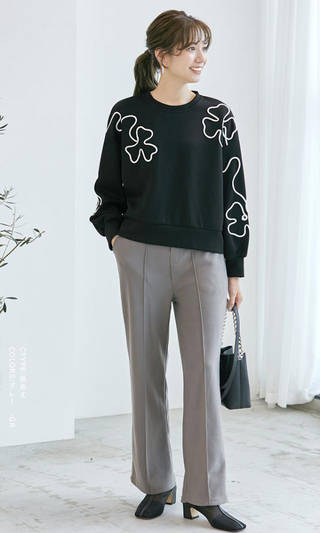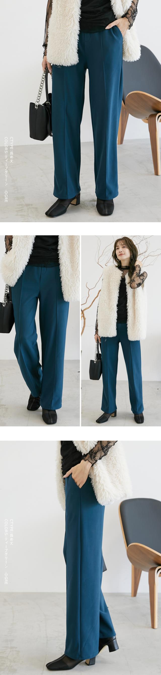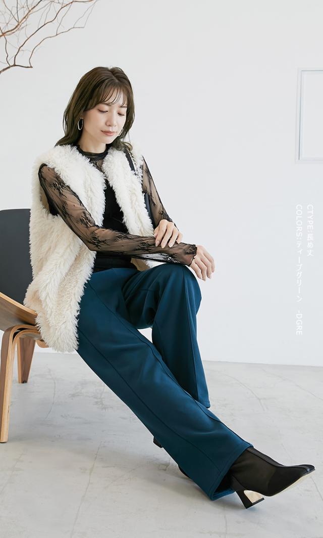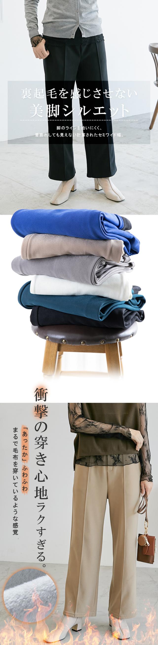 裏起毛を感じさせない美脚シルエットのあったかワイドパンツ。
