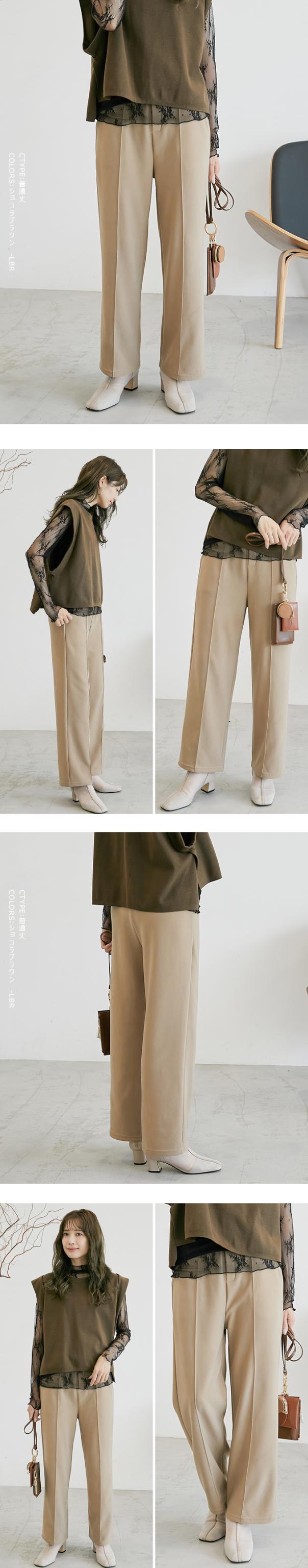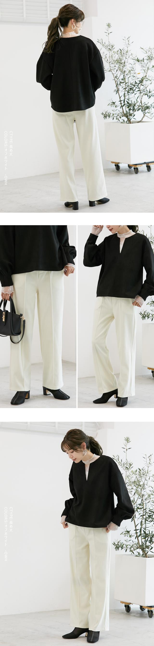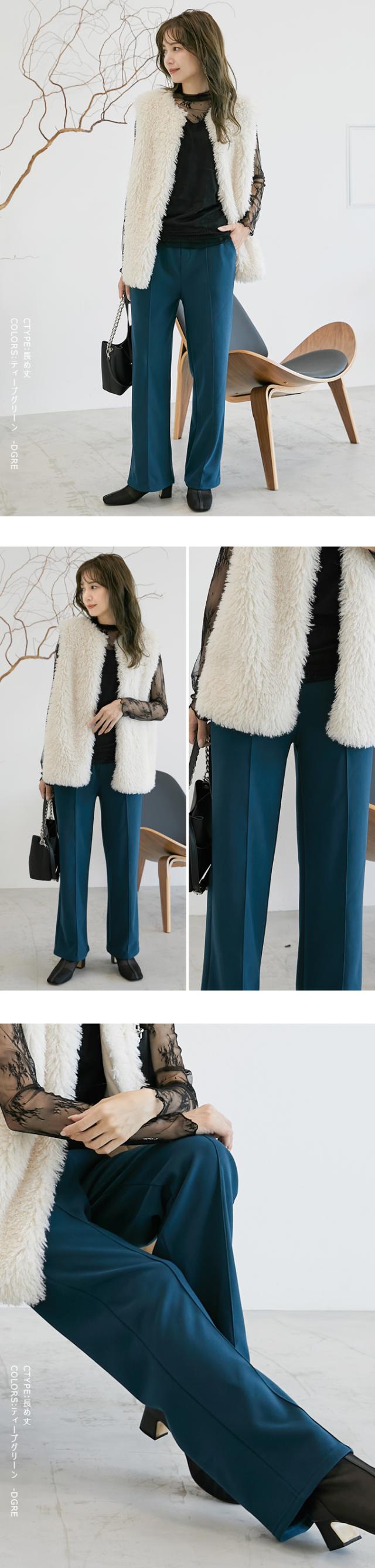 裏起毛を感じさせない美脚シルエットのあったかワイドパンツ。