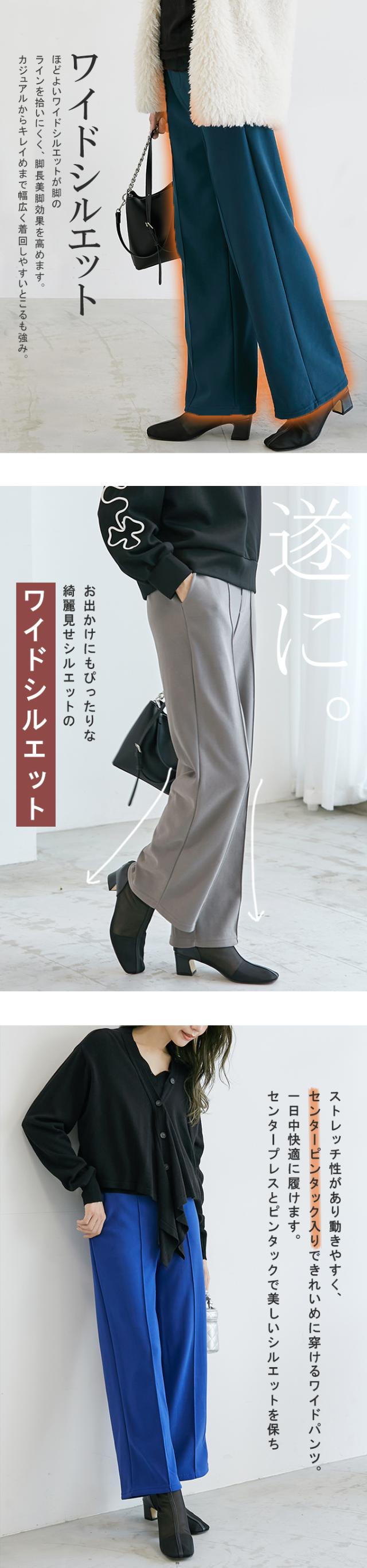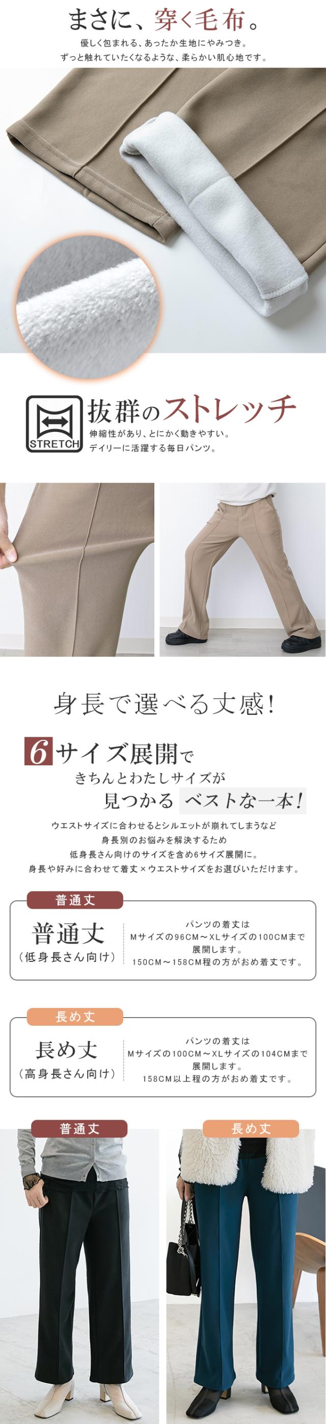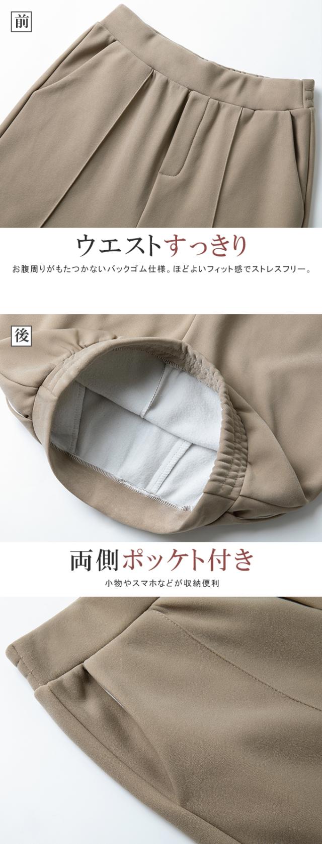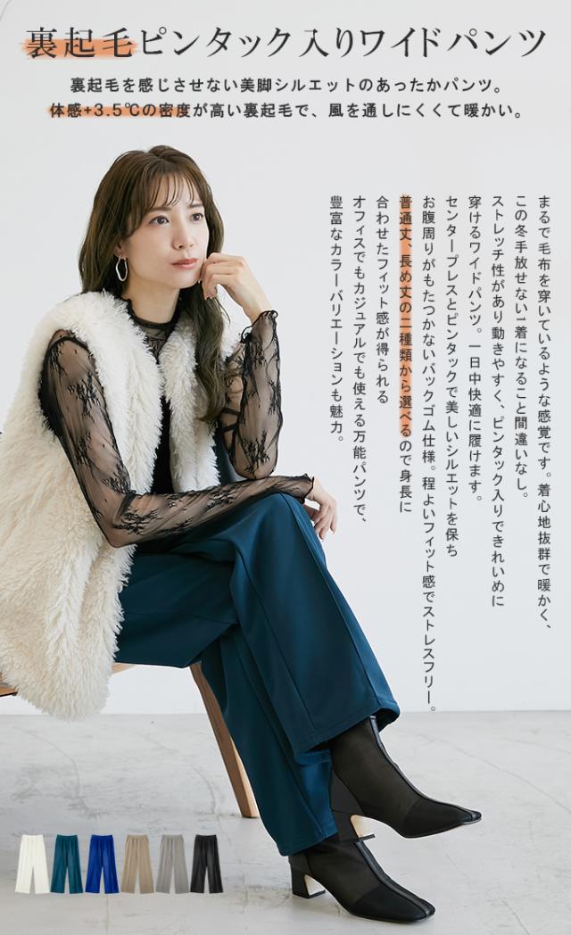 裏起毛 ピンタック入りワイドパンツ 裏起毛を感じさせない美脚シルエットのあったかワイドパンツ。 体感+3.5℃の密度が高い裏起毛で、風を通しにくくて暖かい。 まるで毛布を穿いているような感覚です。 着心地抜群で暖かく、この冬手放せない1着になること間違いなし。 ストレッチ性があり動きやすく、ピンタック入りできれいめに穿けるワイドパンツ。 一日中快適に履けます。 センタープレスとピンタックで美しいシルエットを保ち お腹周りがもたつかないバックゴム仕様。程よいフィット感でストレスフリー。 普通丈、長め丈の2種類から選べるので身長に合わせたフィット感が得られる オフィスでもカジュアルでも使える万能パンツで、豊富なカラーバリエーションも魅力。 ※モニター環境により多少色合いが異なりますので、予めご了承くださいませ。 コンパクトな配送の為、こちらの商品は圧縮してお届けしております。 商品の素材によって開封後はちょっとシワの状態になる場合もあります、 一度洗濯すると本来の状態に戻りますのでご安心くださいませ。 |