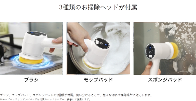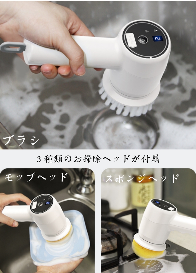 電動ブラシ 防水 強力 パワフル コードレス 軽量 掃除 ブラシ 風呂掃除 ハンディ ハンド お風呂 洗車 窓 床 おしゃれ 激落くん プラスマイナスゼロコードレス電動ブラシ