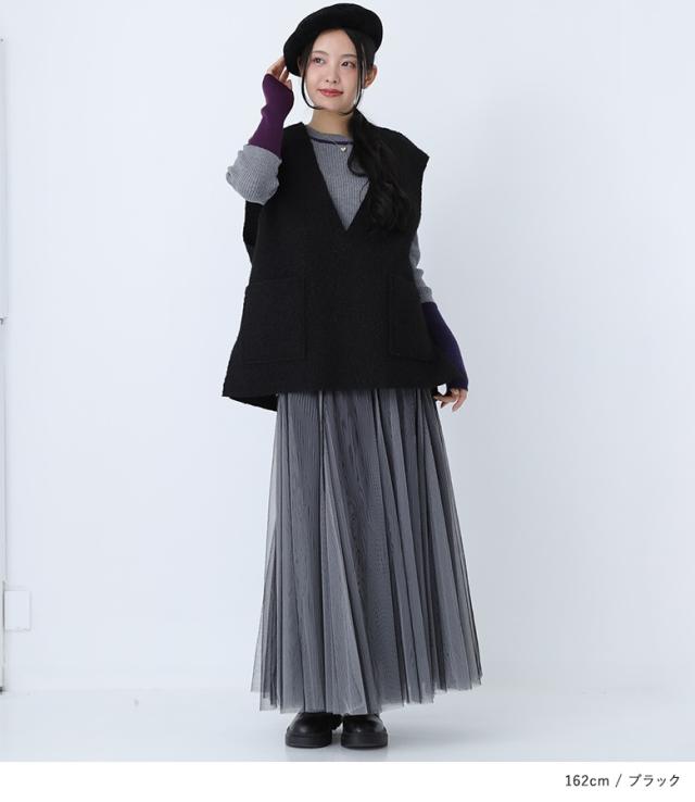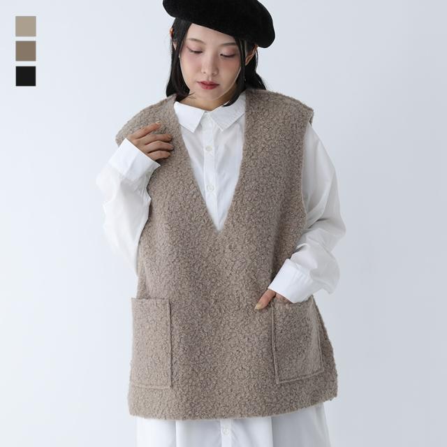 <冬新作>『リバーシブルベスト』【メール便不可】【30】[ベスト レディース アウター ノースリーブ Vネック 深Vネック リバーシブル 重ね着 レイヤード ボア 秋 冬 オシャレウォーカー]