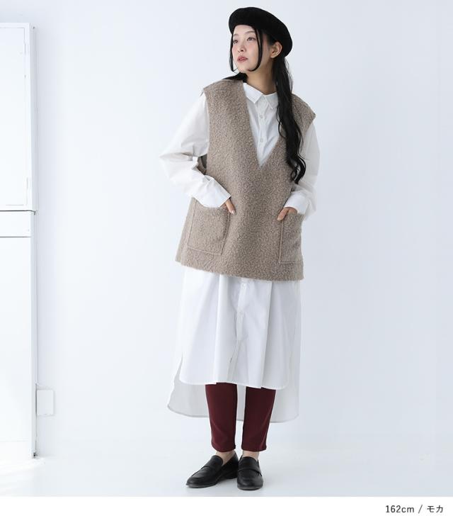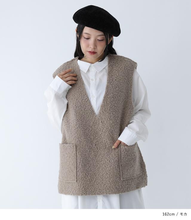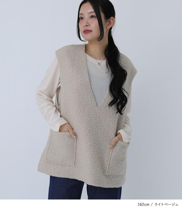 ベスト レディース アウター ノースリーブ Vネック 深Vネック リバーシブル 重ね着 レイヤード ボア 秋 冬 オシャレウォーカー 【TP】 トップス ボアベスト リバーシブルベスト ミディ丈 ミドル丈 2way スリット 後ろ下がり 無地 異素材MIX カジュアルボア 裏ボア ポケット おうちで洗える あったか もこもこ ふわふわ ふわもこ カジュアル シンプル ナチュラル 可愛い系 大人女子 大人可愛い お洒落可愛い 大人カジュアル ベーシック ニュアンス ラフ Sサイズ Mサイズ Lサイズ 10代 20代 30代 40代 50代 60代 低身長 高身長 女子会 オフィス 通勤 通学 お買い物 お出掛け 旅行 おしゃれ お洒落 トレンド 流行 osharewalker ライトベージュ 茶色 モカ ブラック 黒[ID]13oo027