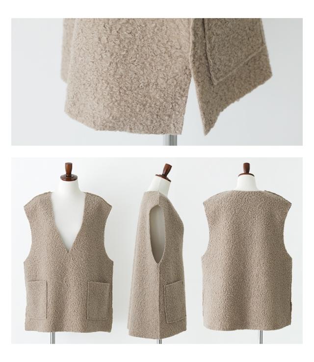 ■デザイン その日の気分やスタイルに合わせて着こなせる、リバーシブル仕様のベスト。さっと羽織るだけでコーディネートのワンポイントになります。大人っぽいカラーバリエーションも嬉しいポイント。 ■コーディネート いつものコーディネートにプラスするだけで、こなれ感がアップするアイテム。カジュアルからきれいめスタイルまで、幅広く着こなせます。 ■素材 もこもことしたボア面は、見た目にもあたたかく季節感たっぷり。裏面はすっきりとした生地感で、気分やコーデに合わせて2通りの着こなしが楽しめます。着回し力の高い、実用性とデザイン性を兼ね備えた一枚です。 |