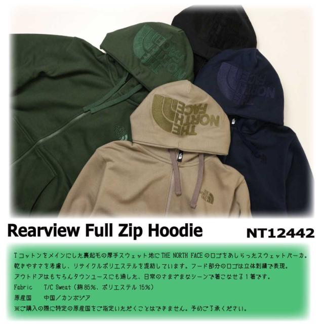 THE NORTH FACE ザ・ノース・フェイス 長袖 パーカー NT12442 リアビュー フルジップ フーディ 厚手スウェット アウトドア NT12340 メンズ 立体刺繍 ロゴ