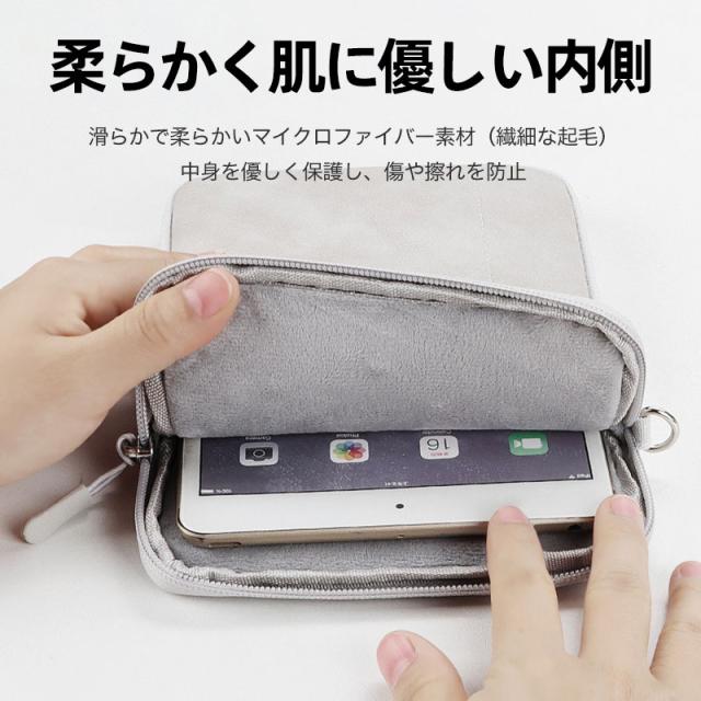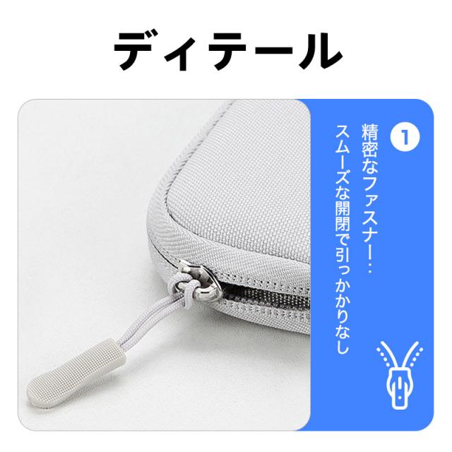 スマホ、ケーブル、イヤホン、タッチペンもまとめて収納可能。整理整頓が簡単で外出時も快適。