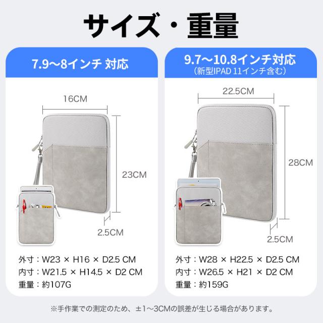 対応サイズ:9.7〜10.8インチ(新型iPad 11インチ対応),、7.9〜8インチ対応