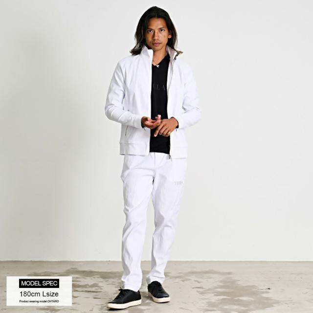 また、同シリーズの「総柄ストレッチジャガード長袖フルジップ」とセットアップで着用すれば、統一感のあるスタイリングが完成し、さらに存在感を高めます。