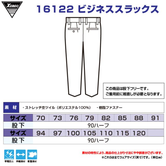 ジーベック XEBEC 作業服 作業ズボン 16122 ビジネススラックス 88-100 オールシーズン 作業着