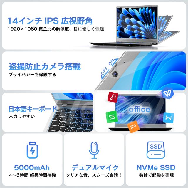 【新品ノートPC】Intel Pentium Gold 第8世代 14.1インチ IPS広視野角 覗き防止カメラ搭載 WPS Win11 メモリ16GB SSD1TB 日本語配列 送料無料