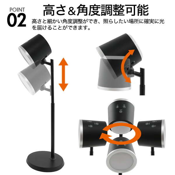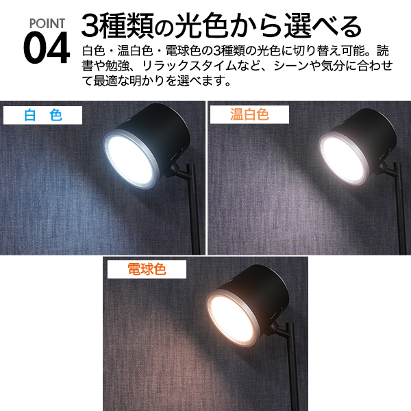 3種光色・角度調整・無段階調光可能!