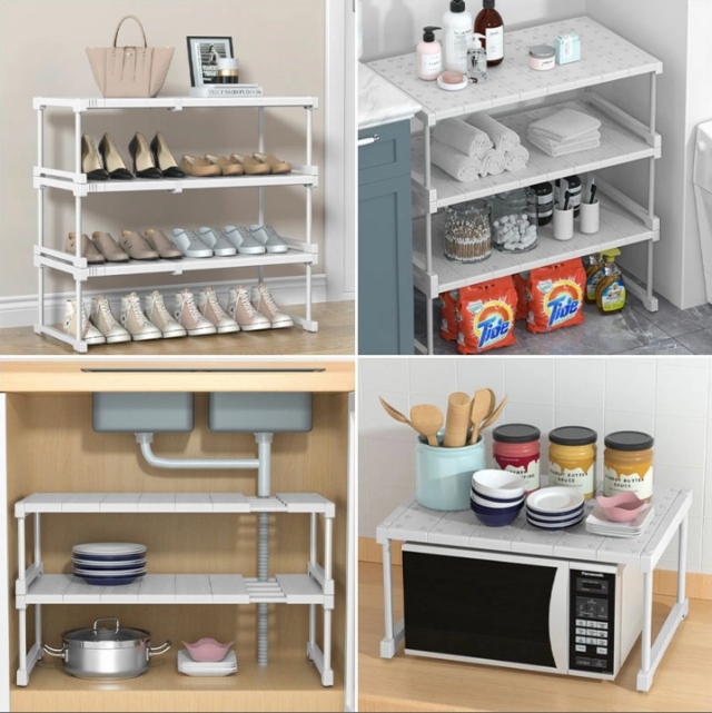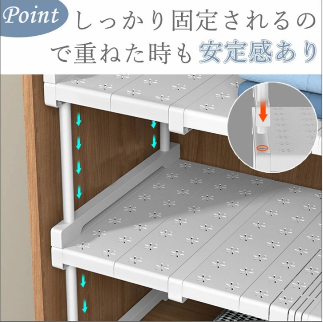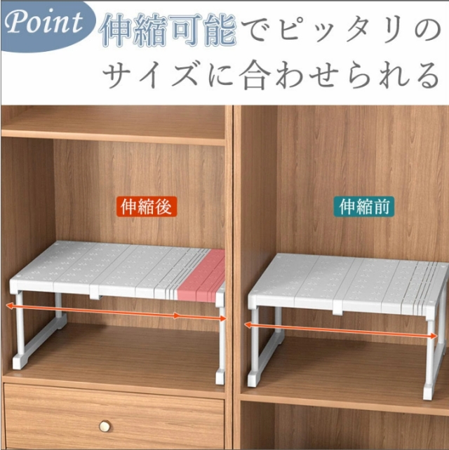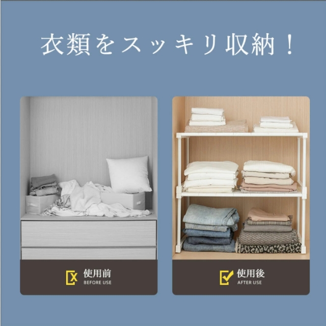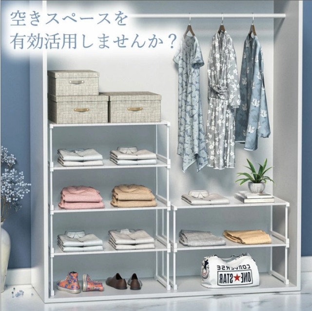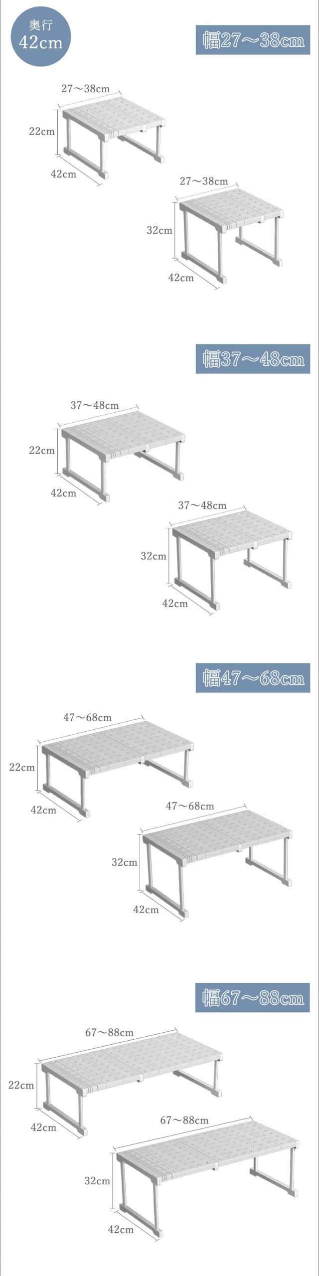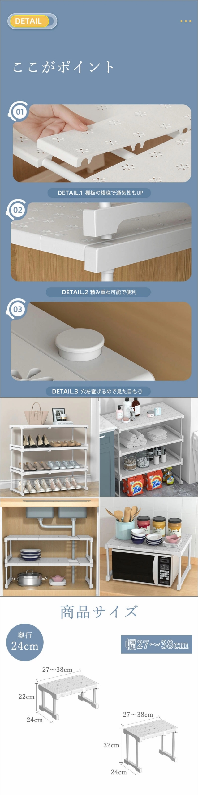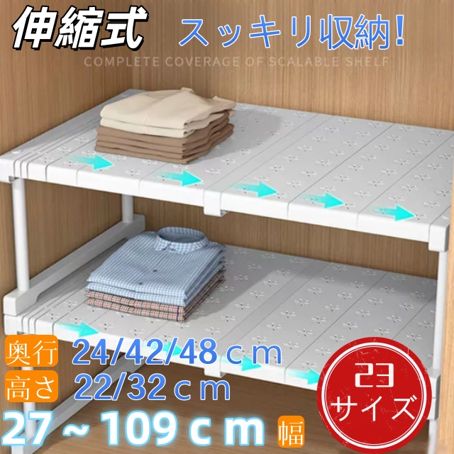 伸縮棚 積み重ね 幅 27-108cm 高さ 22-50cm 奥行 24cm 42cm 伸縮ラック クローゼット 押入れ 通気性 収納 防水 丈夫 頑丈 整理棚 シンク下 ワイド 空間活用 省スペース キッチンラック 空きスペース 隙間 新生活