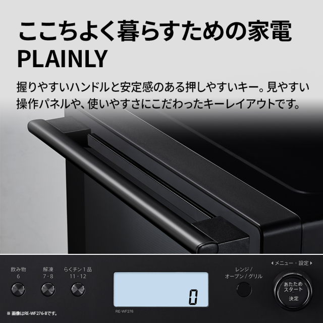 商品名 シャープ 過熱水蒸気オーブンレンジ RE-WF276 メーカー シャープ メーカー型番 RE-WF276-W、RE-WF276-B カラー ホワイト、ブラック メーカー保証期間 1年間 電源 交流100V 50-60Hz共用 外形寸法 幅465×奥行385×高さ390(mm) ハンドルを含む奥行437(mm) 庫内有効寸法 幅350×奥行325×高さ225(mm) 総庫内容量 27L 質量 約13kg 電源コードの長さ 約1.4m レンジ 定格消費電力:1400W