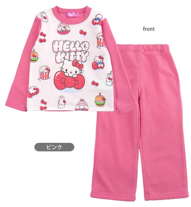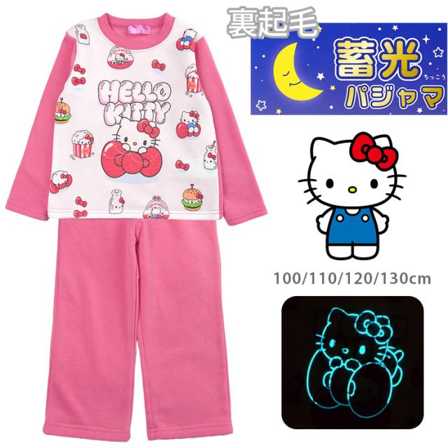 【送料無料】ハローキティ 裏起毛 蓄光 パジャマ 上下セットアップ キッズ ジュニア 秋冬春 100 110 120 130 ピンク 534KT1111 HELLO KITTY Sanrio サンリオ キティちゃん 長袖 長ズボン ルームウエア 部屋着 プルオーバー 丸首 ロングパンツ 子供 女の子 kj0016