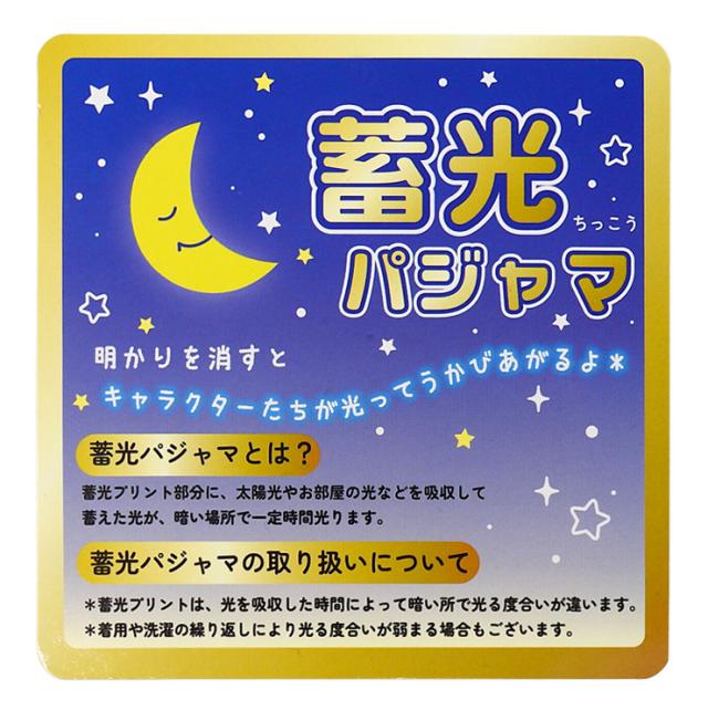 蓄光プリント部分に、太陽光やお部屋の光などを吸収して蓄えた光が、暗い場所で一定時間光ります。