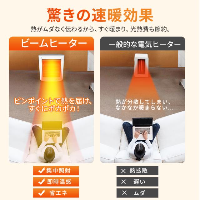 500Wと1000Wの切り替えが可能。省エネで効率よく暖められるため、日常使いに最適です。 ★「軽量&コンパクト」: