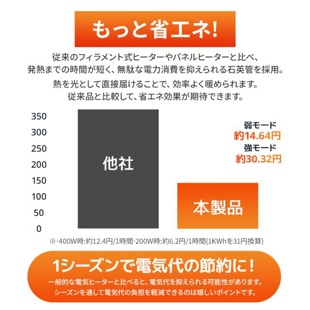 無駄のないミニマルデザインで、インテリアにも自然にマッチ。操作もスイッチ一つで簡単です。 ★「2段階切替で省エネ暖房」: