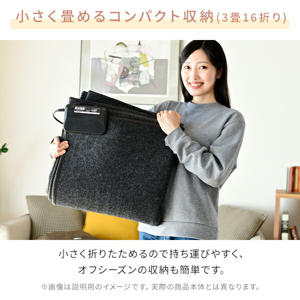 | 商品説明 | ●消費電力:650W ●消費電力量:中 約342Wh・強 約468Wh ●電気代目安(1時間あたり):中 約10.6円・強 約14.5円 ●弱・中・強(7段)切替 ●コードフリーターン ●16折収納 ●ダニ対策機能 ●コード長さ:約1.5m ●切り忘れ自動OFF:約6時間後に自動的に通電が切れる安心機能 ●左右面切替 ●やぐらコタツを置いて使用可能 ◆こたつ併用の際のご注意 ・こたつはカーペット本体の中央に置いてください ・こたつの温度調節は(中)〜(弱)にあわせてください (強)に近い目盛にしますと、カーペット本体の温度調節器がはたらいて通電しないことがあります ◆家具などを置かれるときのご注意 ・脚の細いテーブルやイスは必ず当て板や脚ゴムをしてください ・キャスター付きのイスや家具を置かないでください (カーペット本体をいためる原因となります) ・タンスなどの極端に重いものを置かないでください ●原産国:日本 |