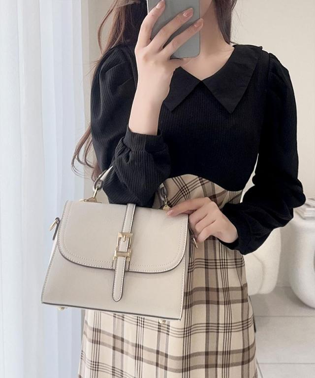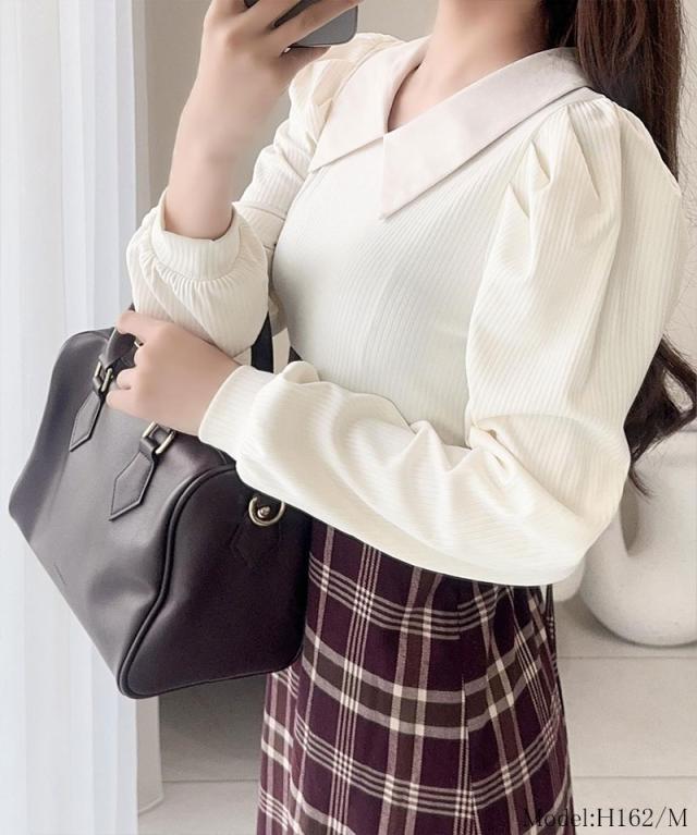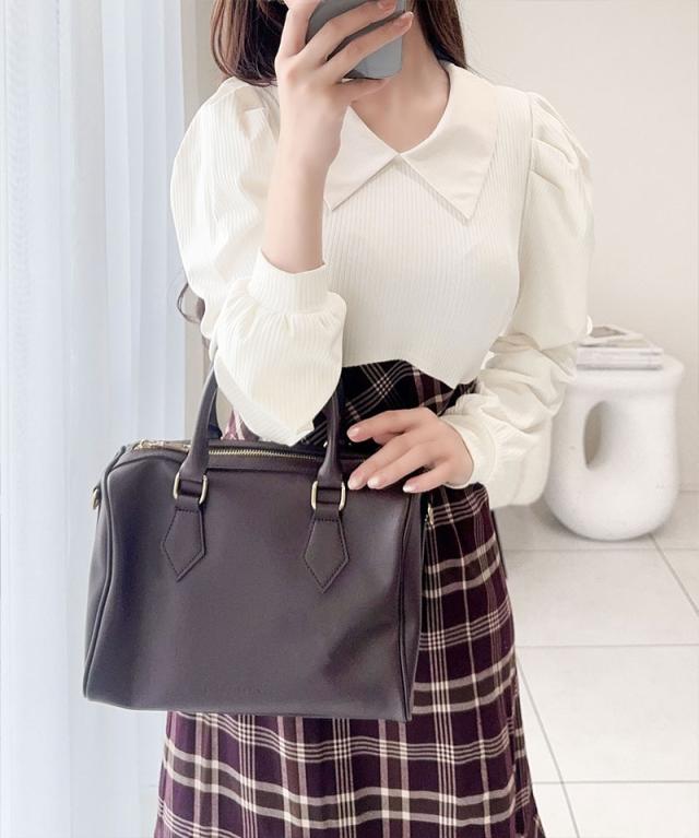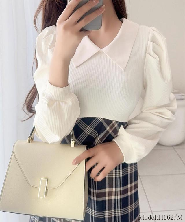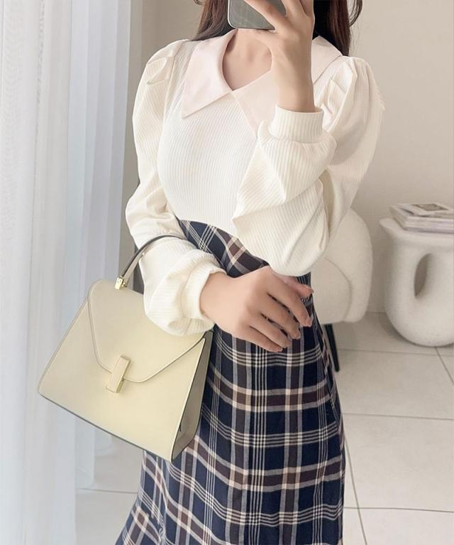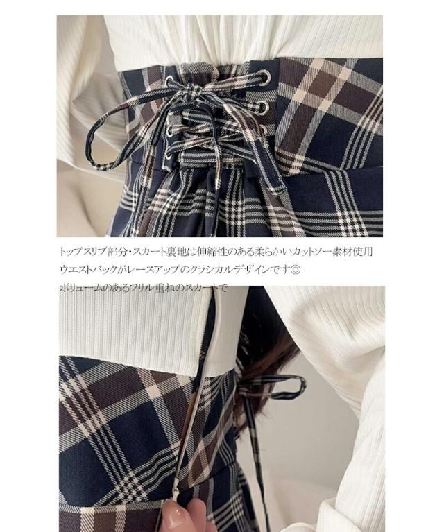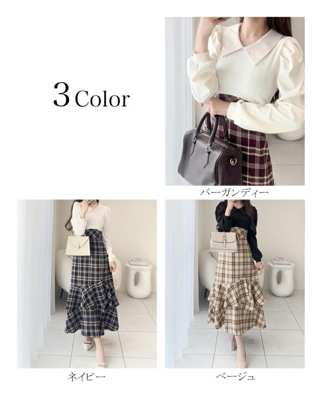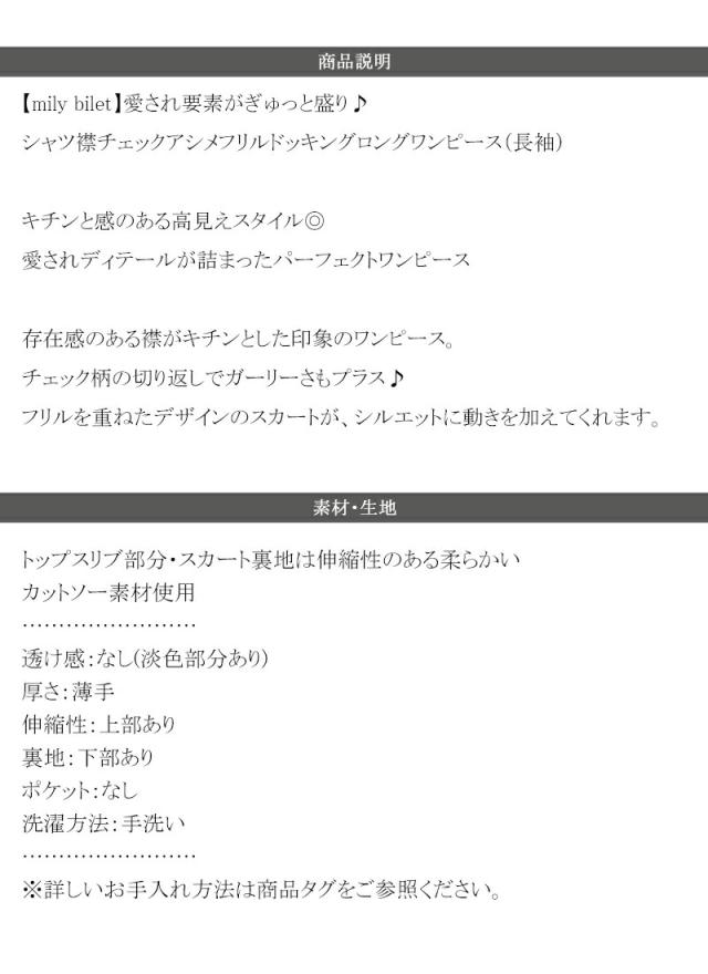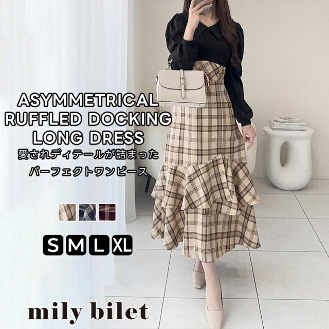 クラシカルエルフ冬新作 mily bilet ワンピース 秋 レディース きれいめ シャツ 襟 チェック アシメ フリル ドッキング ロングワンピ レースアップ 長袖 大きいサイズ 2025aw mi1139088