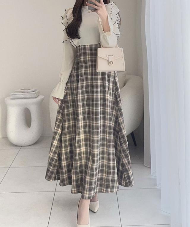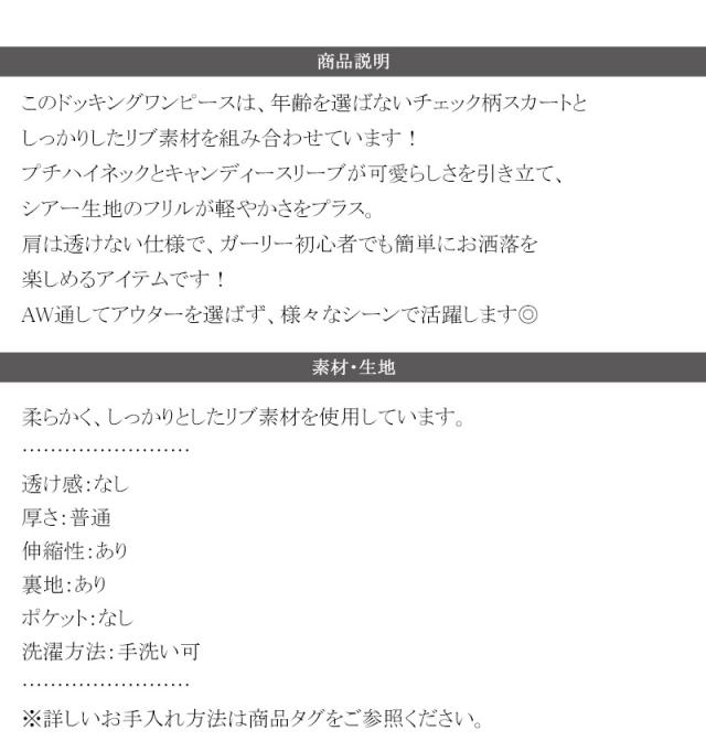 このドッキングワンピースは、年齢を選ばないチェック柄スカートとしっかりしたリブ素材を組み合わせています!