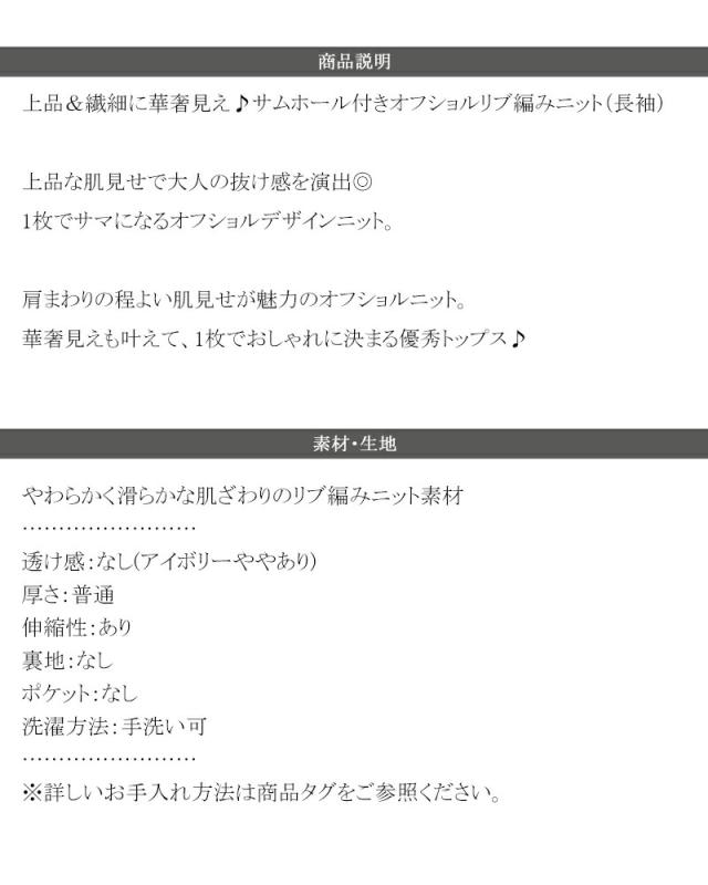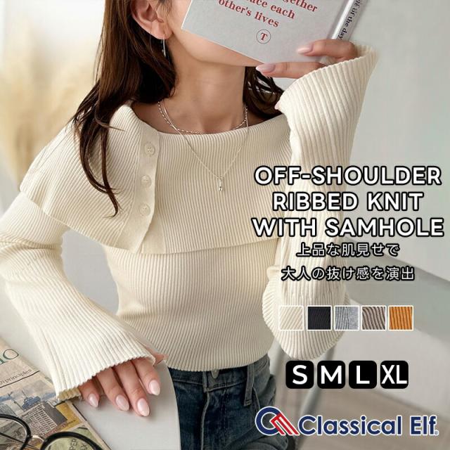 クラシカルエルフ冬新作 トップス ニット レディース 長袖 華奢見え サムホール 付き オフショルダー リブ 編み 長袖 スタイルアップ 大きいサイズ 2025aw ce1260446