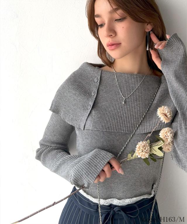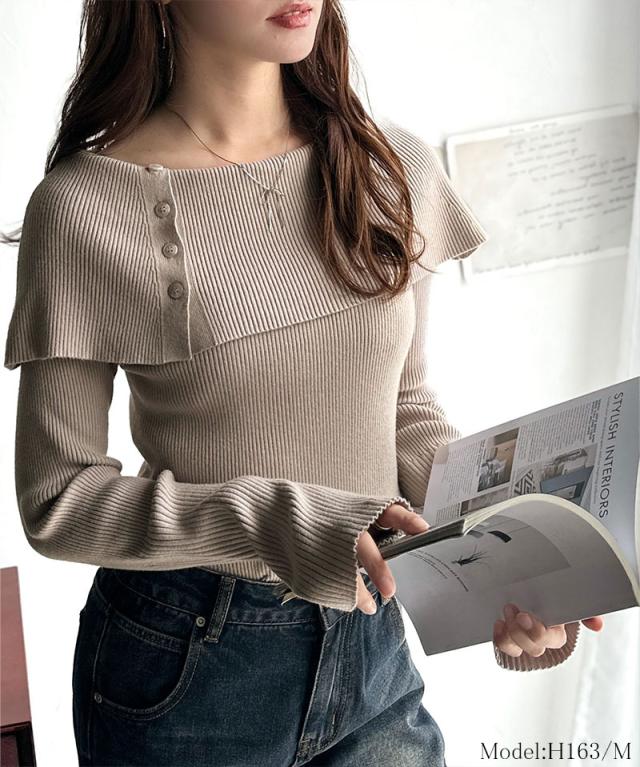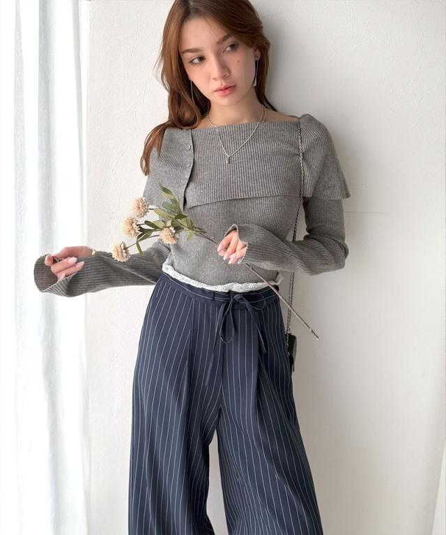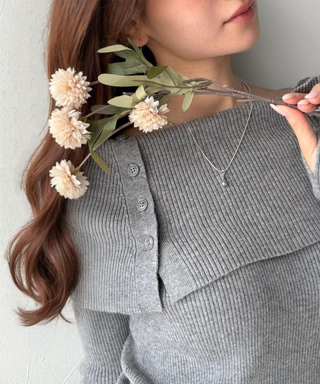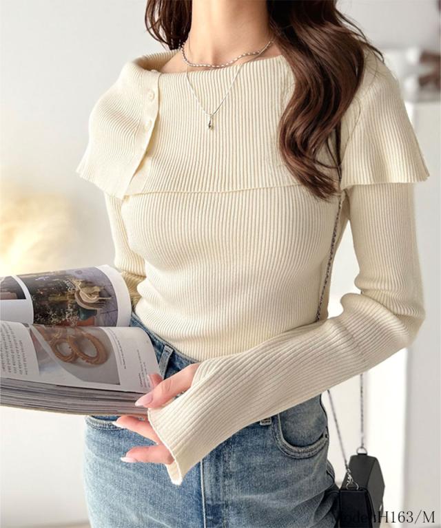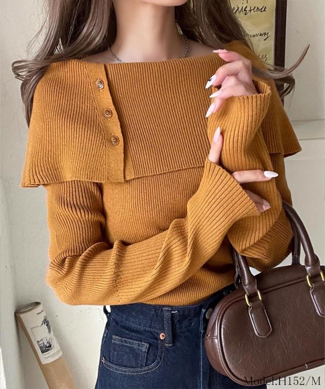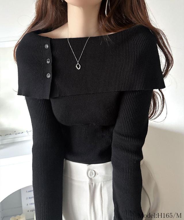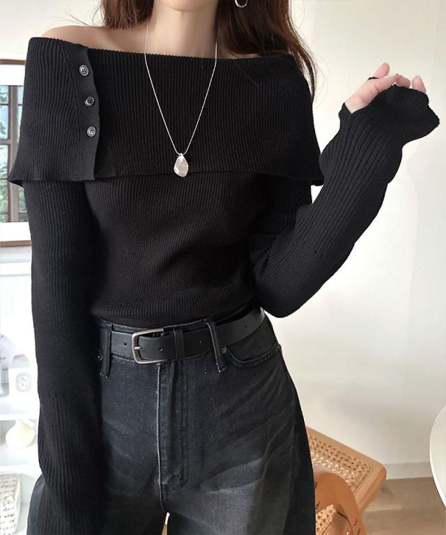 トレンド感のあるオフショルデザインに、リブニットの縦ラインでスタイルアップが叶う大人のためのニットトップス。