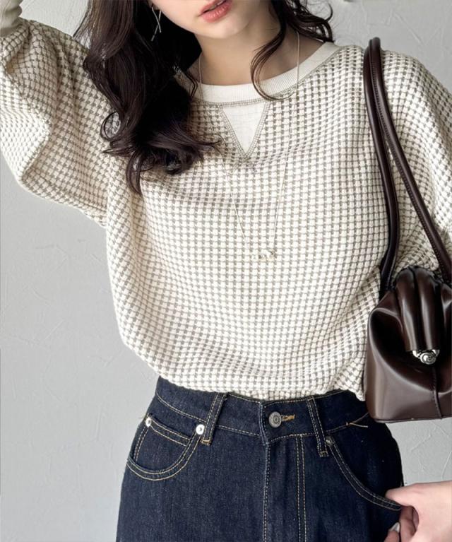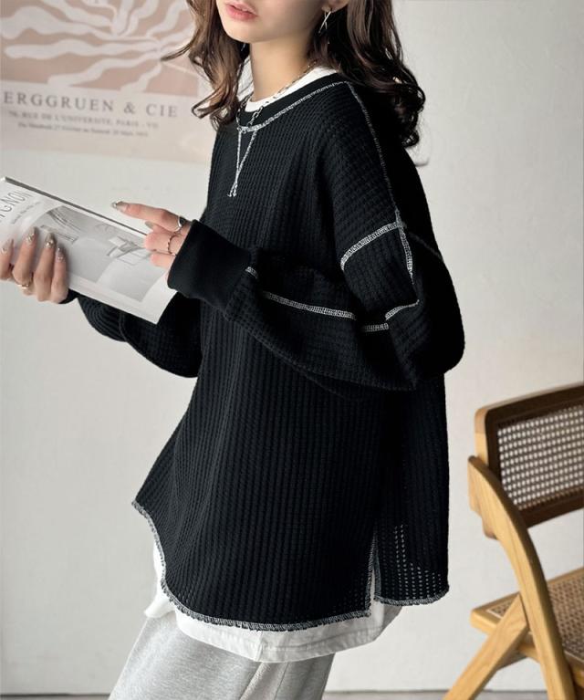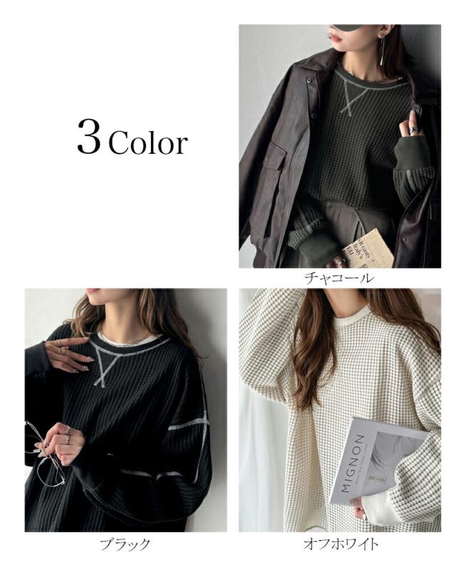 クラシカルエルフ冬新作 ロンt レディース ブランド トップス トレンド 素材 着映え 凸凹 ヘビー ワッフル 配色 ステッチ ロンT 長袖 大きいサイズ 2025aw ce1260454