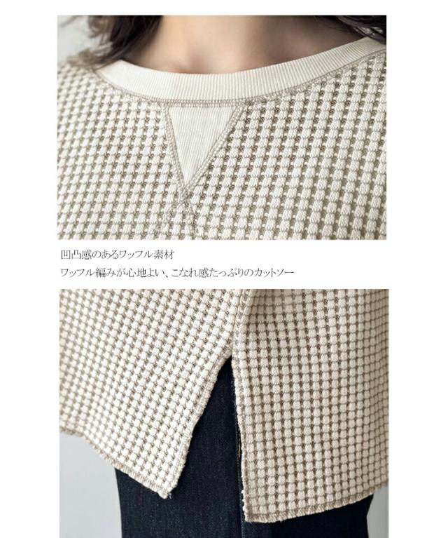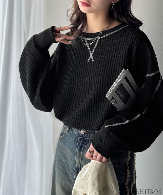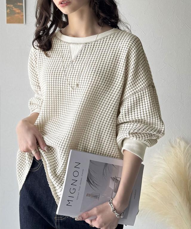 凸凹のぽこぽこした素材感が魅力的で存在感抜群なヘビーワッフルトップス。