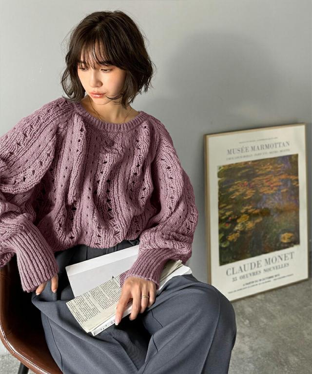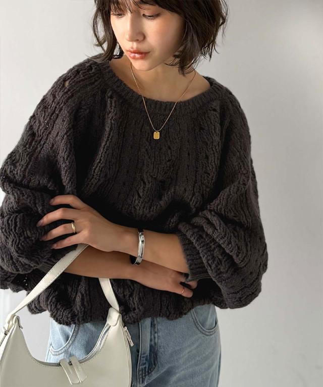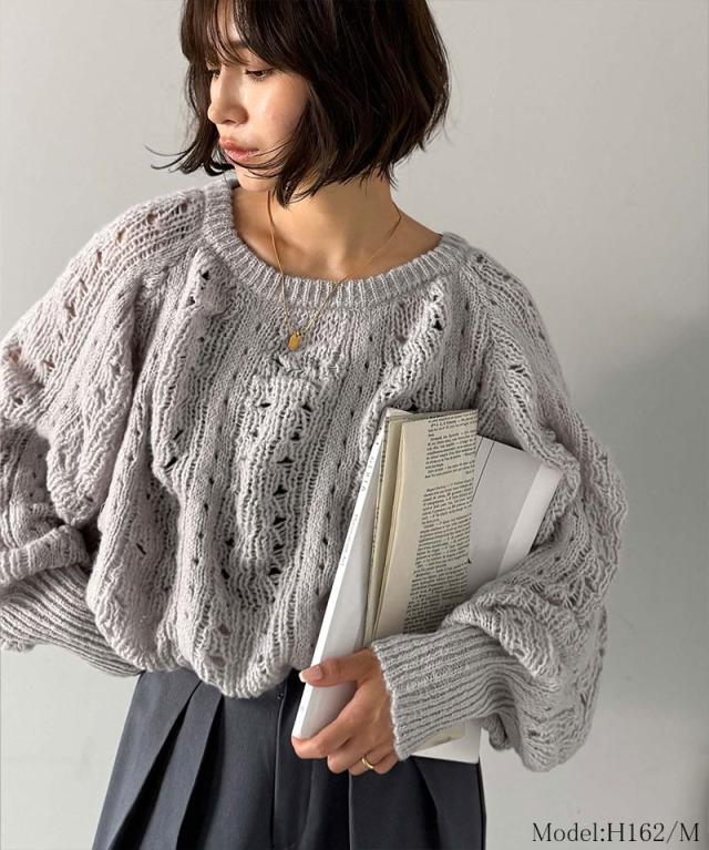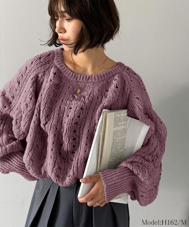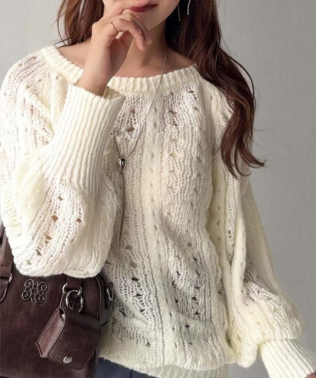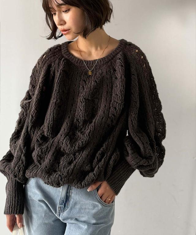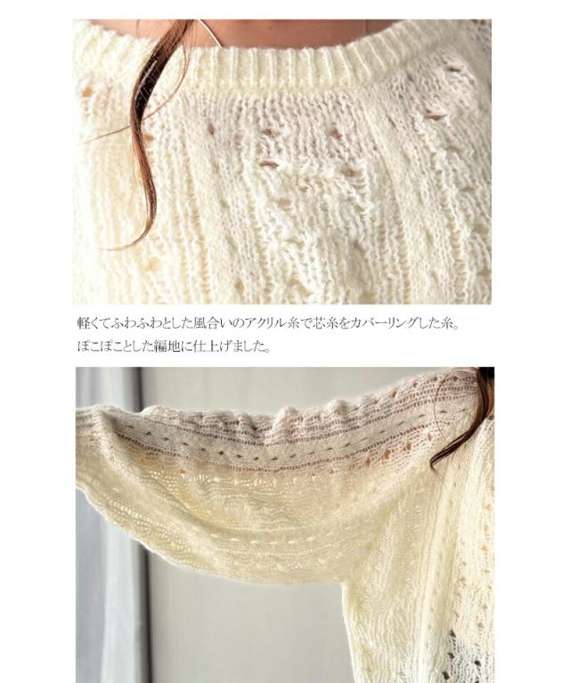 クラシカルエルフ冬新作 トップス ニット レディース 長袖 ポコポコ 透かし 編み ニットプルオーバー レイヤードコーデ ボリューム 袖 大きいサイズ 2025aw ce1260462