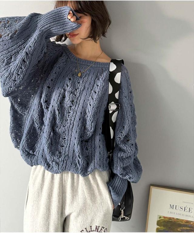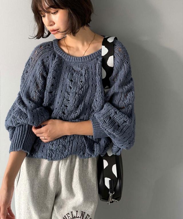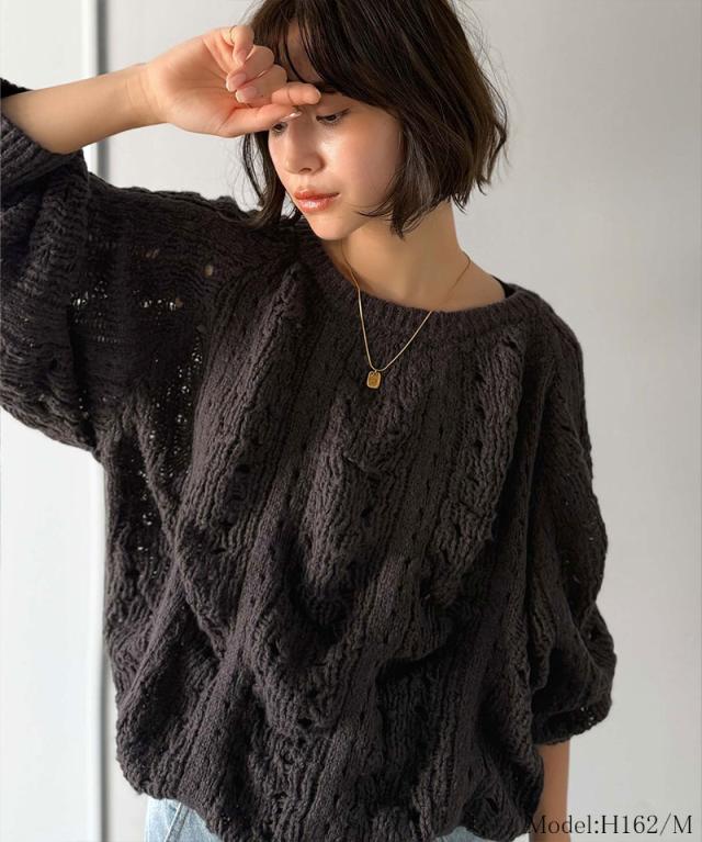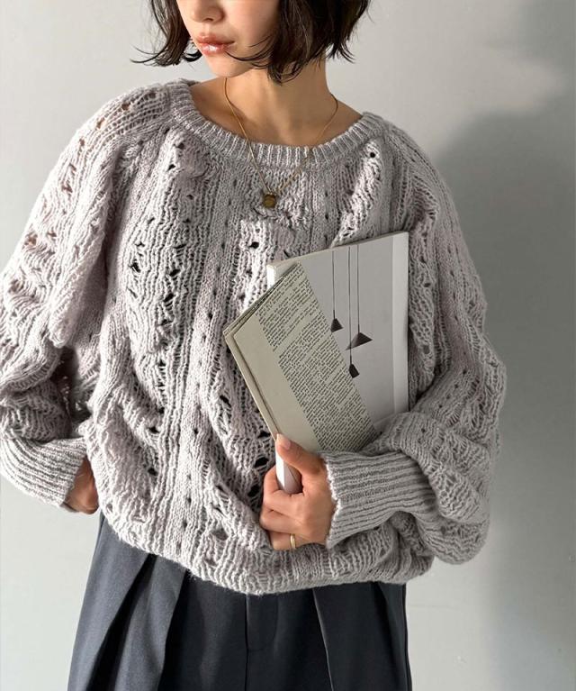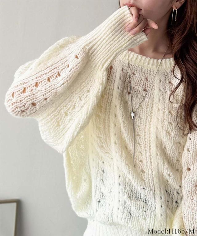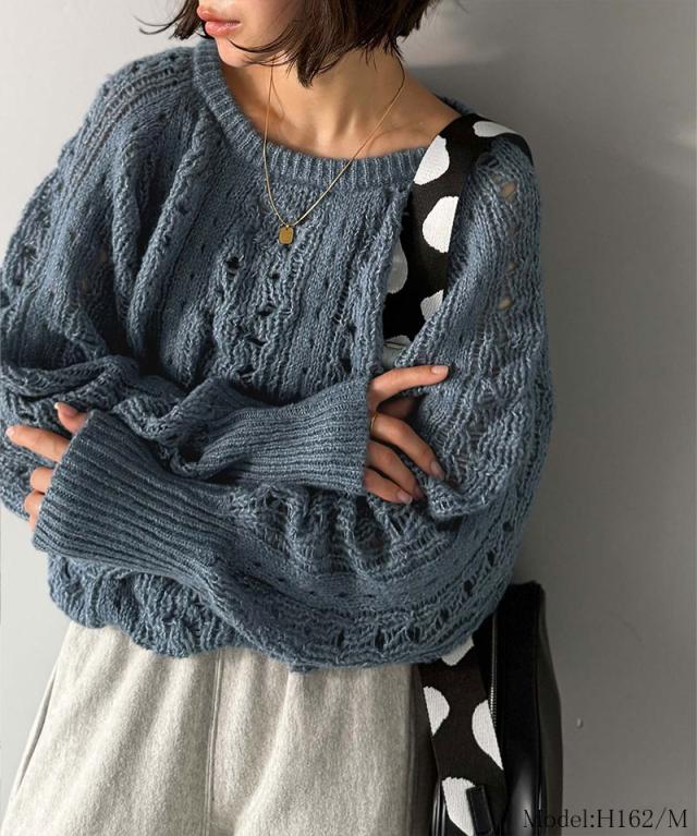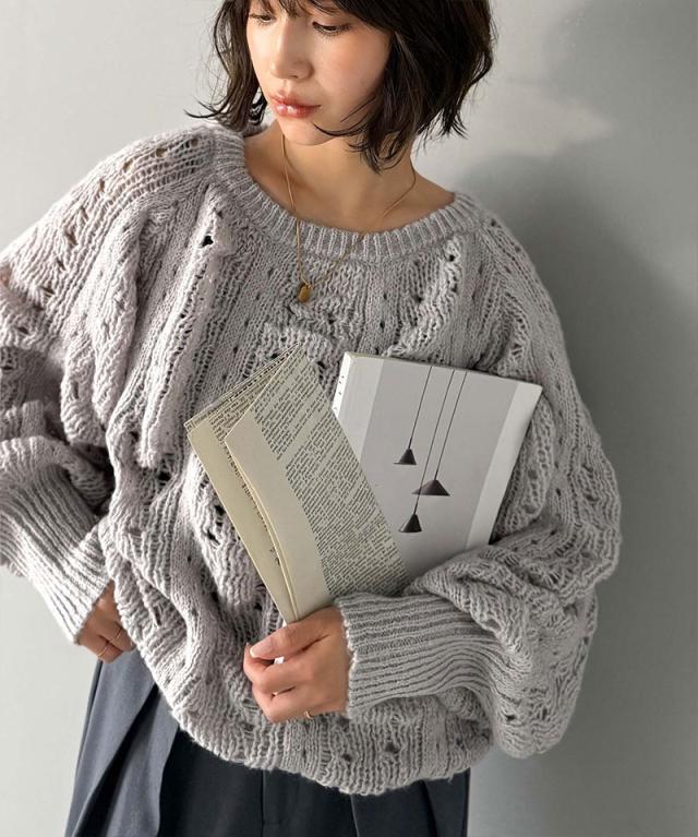 クラシカルエルフ冬新作 トップス ニット レディース 長袖 ポコポコ 透かし 編み ニットプルオーバー レイヤードコーデ ボリューム 袖 大きいサイズ 2025aw ce1260462