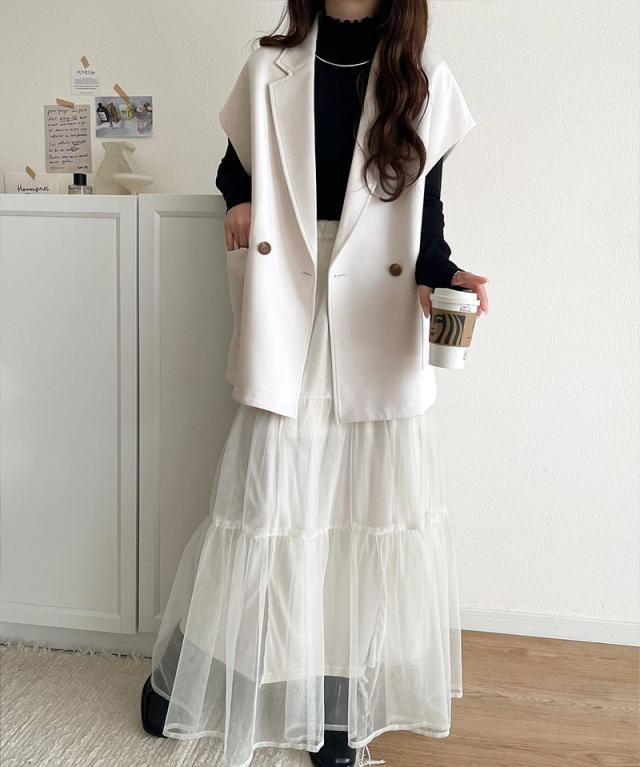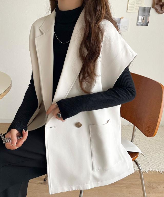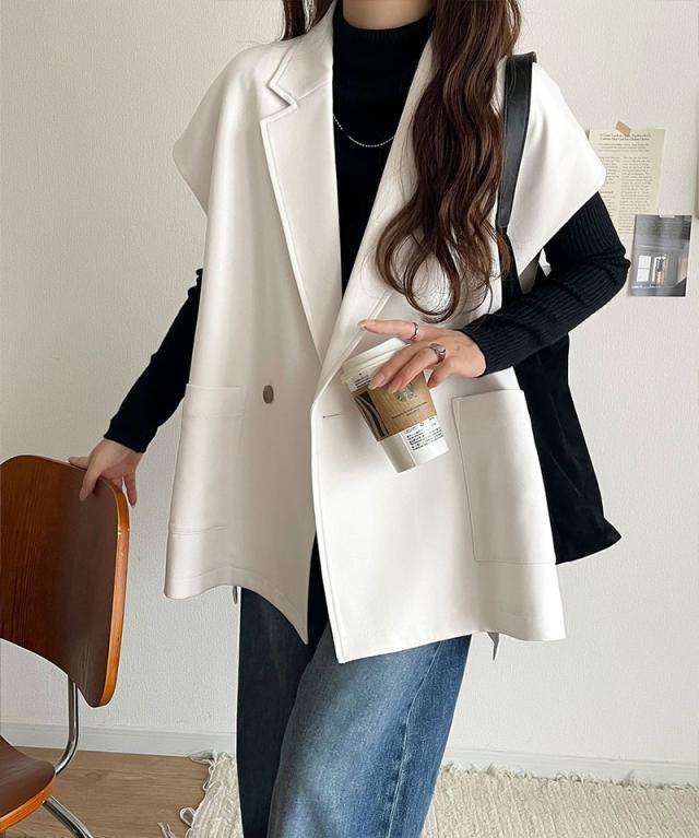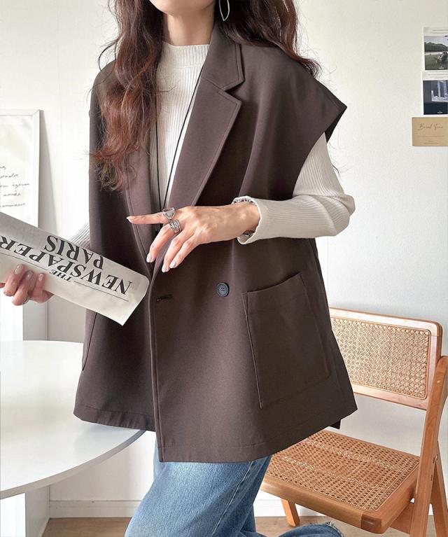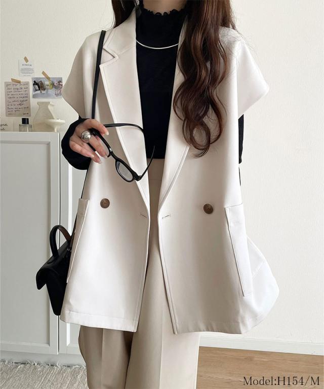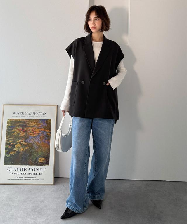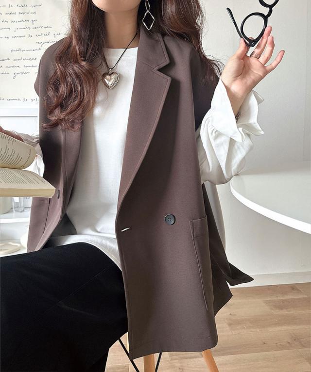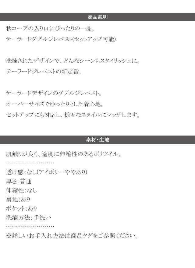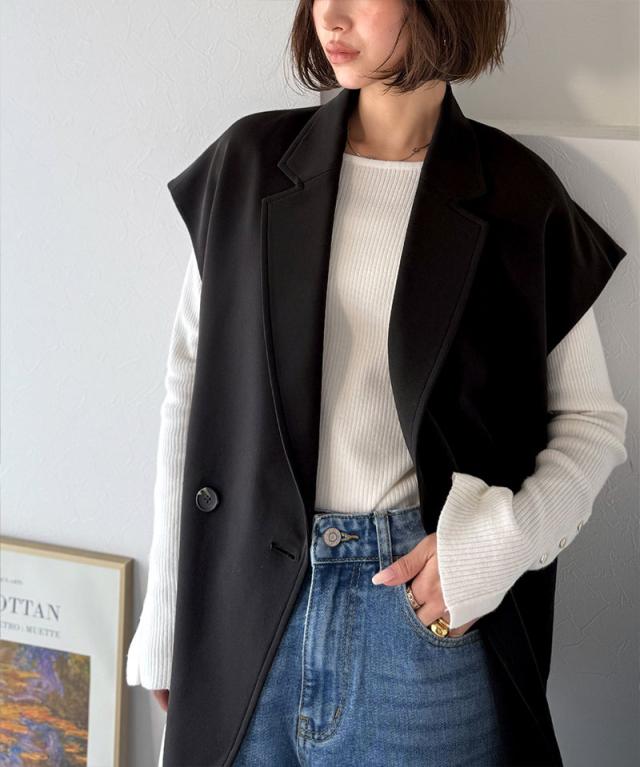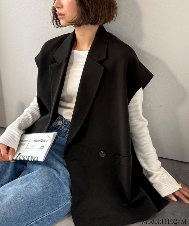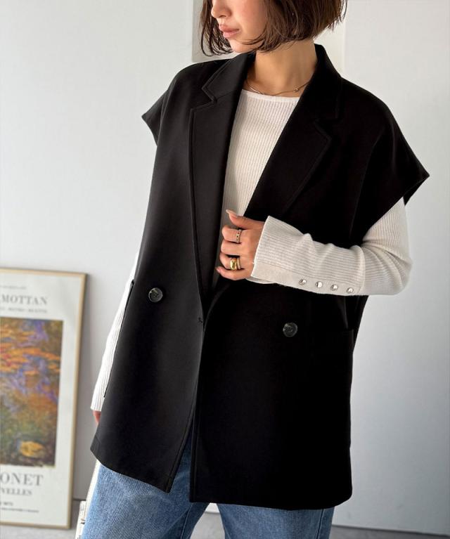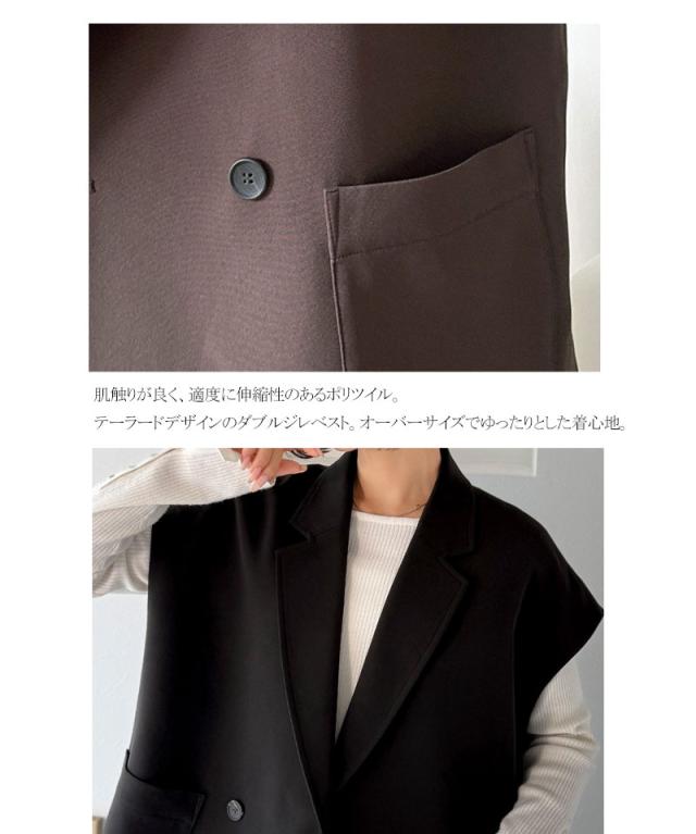 クラシカルエルフ冬新作 ベスト レディース 上品 トップス テーラード ダブル ジレベスト セットアップ可能 羽織り レイヤードコーデ ゆるっと オーバーサイズ 大きいサイズ 2025aw ce1070183