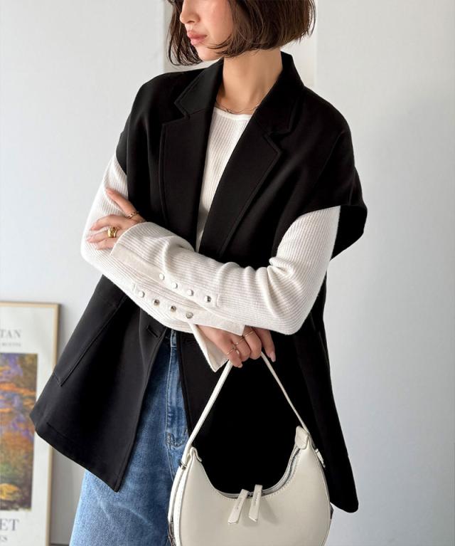 カジュアルとフォーマルを絶妙に融合させたダブルブレストのテーラードジレベスト。