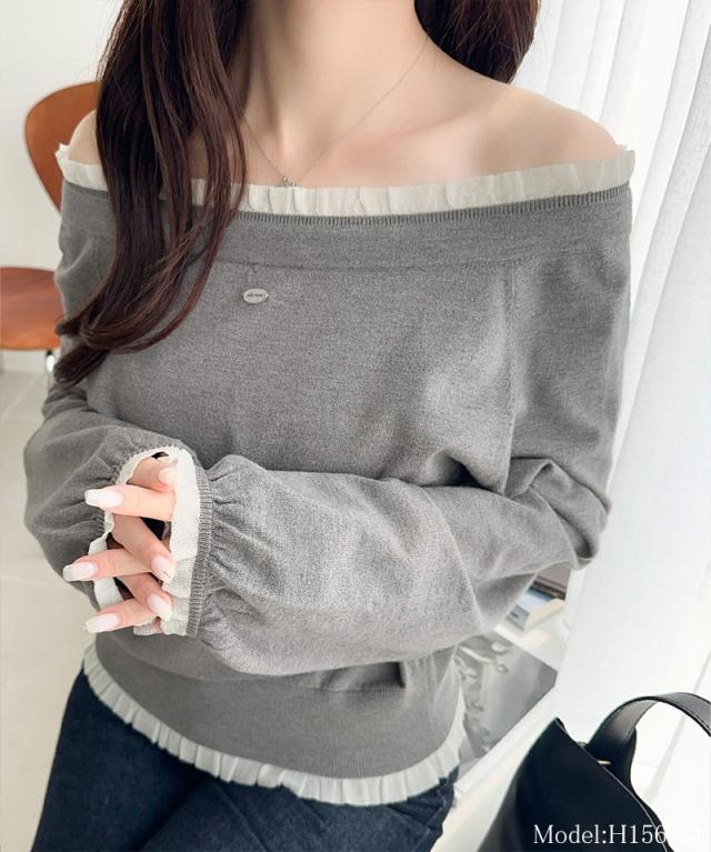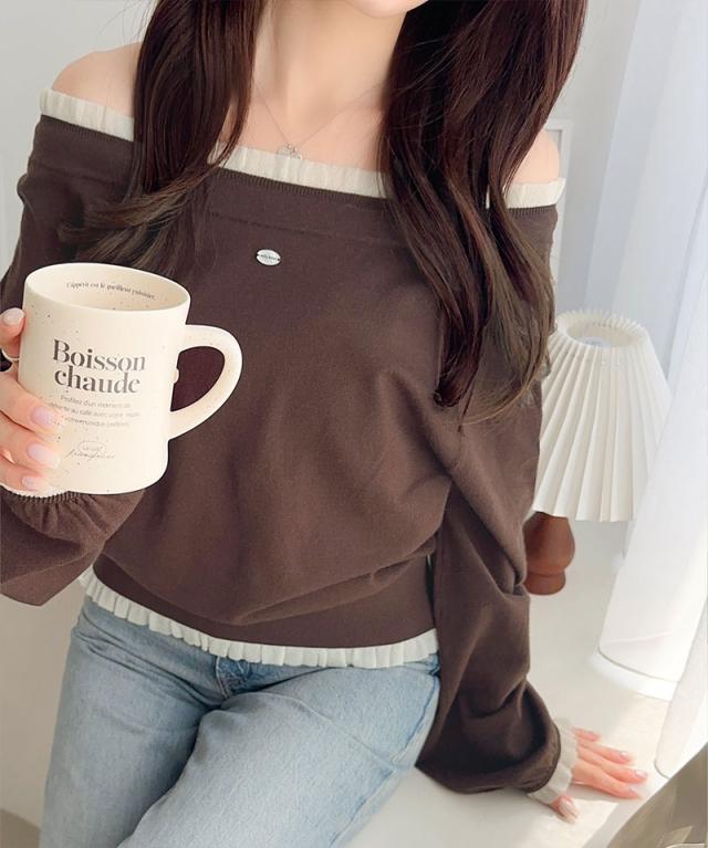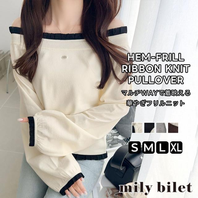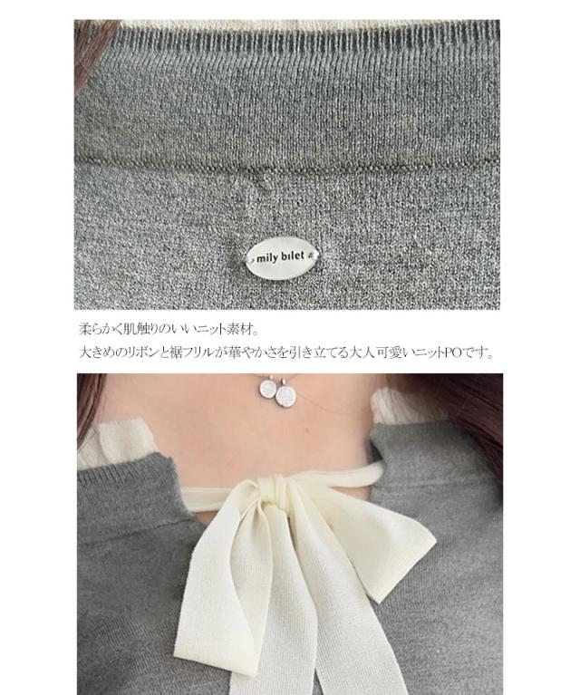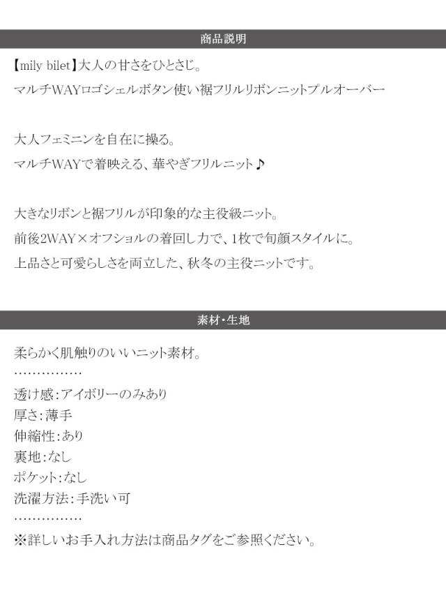 クラシカルエルフ冬新作 mily bilet トップス ニット レディース 長袖 マルチ WAY ロゴ シェル ボタン 使い 裾 フリル リボン ニットプルオーバー 大きいサイズ 2025aw mi1029171