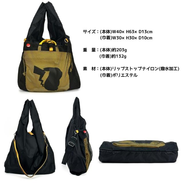 | ポケット | 本体:【外側】メッシュポケット×1【メインルーム内】オープンポケット×1 巾着:【メインルーム内】オープンポケット×1 |