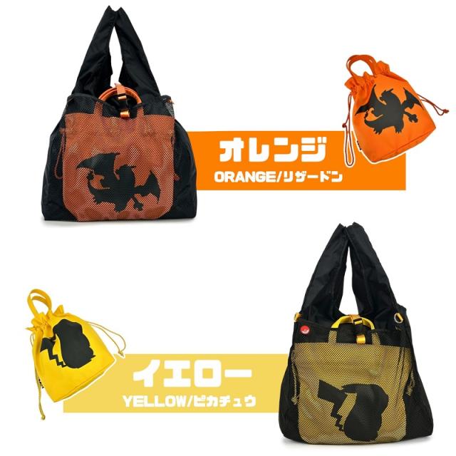 巾着:【メインルーム内】オープンポケット×1 カラー:ピカチュウ/イエロー リザードン/オレンジ ゲンガー/パープル
