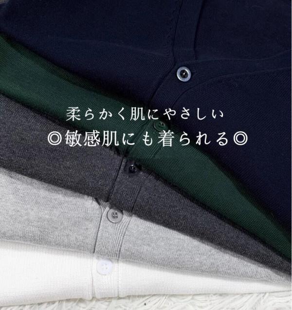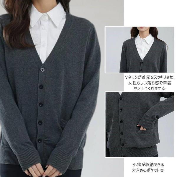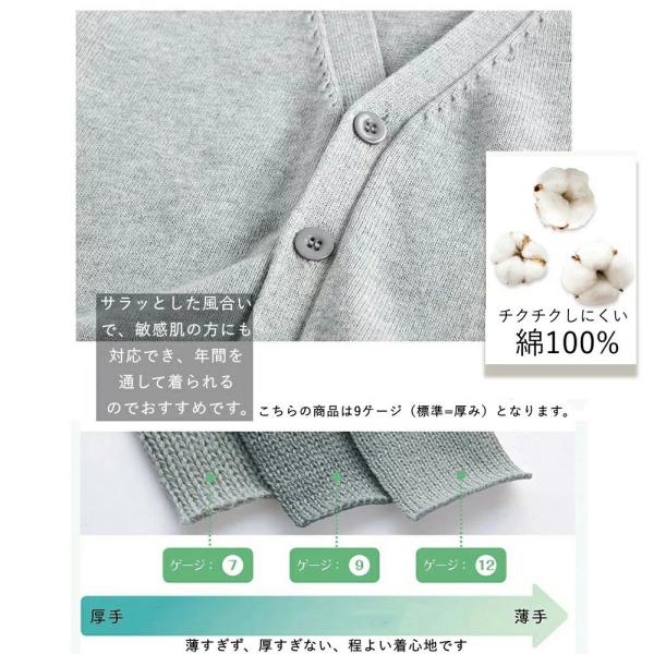 カーディガン レディース 綿100% Vネック 事務服 オフィス カーディガン 毛玉防止 毛玉になりにくい ゆったり コットン ポケット付き 体型カバー