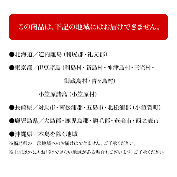 ※福島県の一部地域へのお届けはできません。ご了承ください。