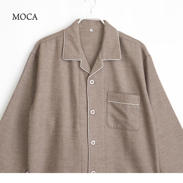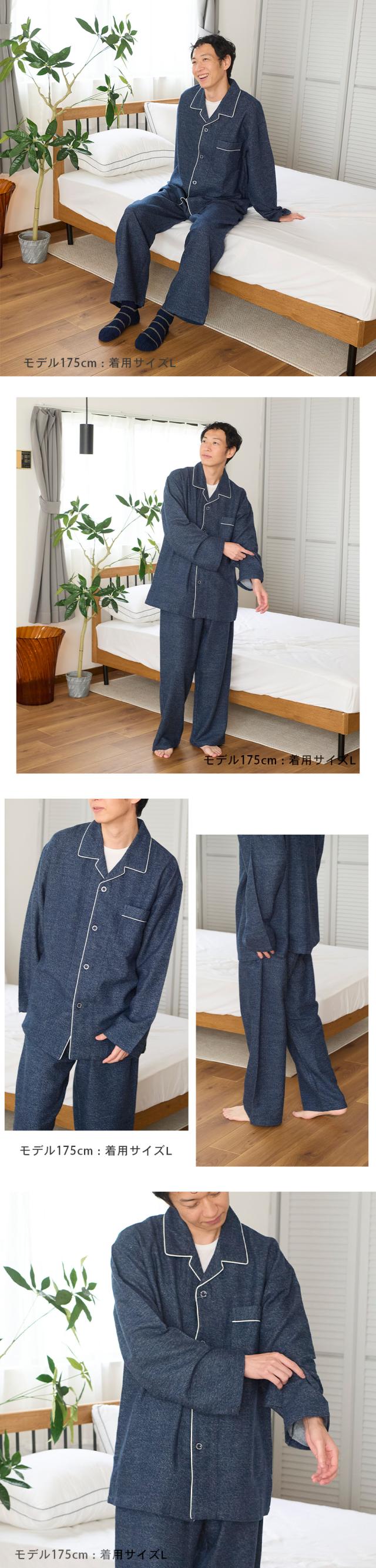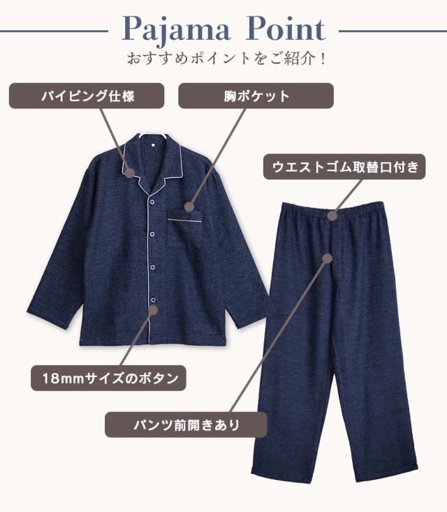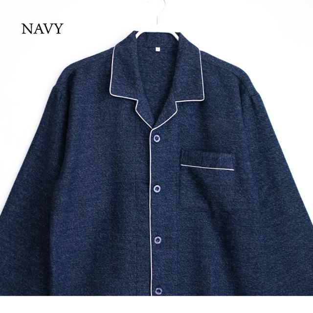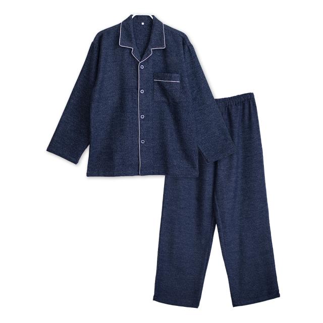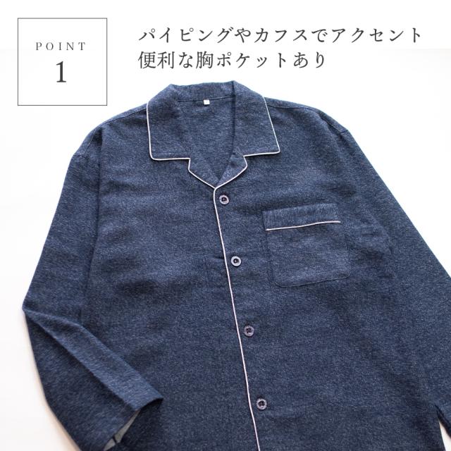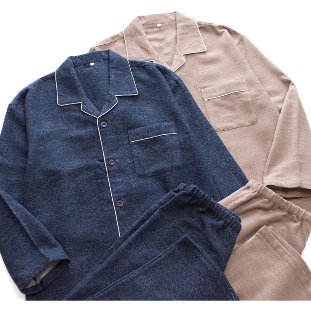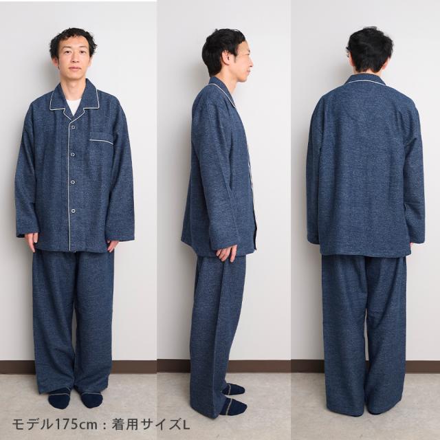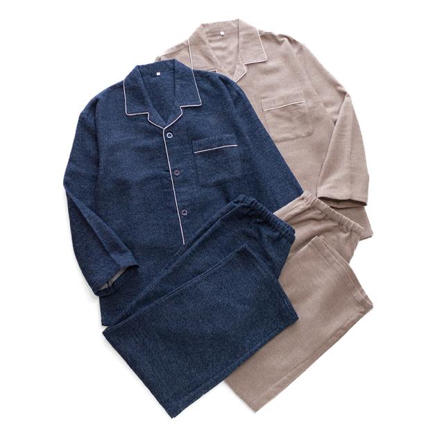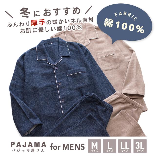 パジャマ メンズ 綿100% 長袖 秋 冬 前開き ボタン 二重構造 ふっくら暖かく柔らかい ネル起毛 先染め 杢調 無地 ネイビー モカ M L LL 3L 親子 おそろい リンクコーデ 家族 ギフト プレゼント 敬老の日 父の日 51985