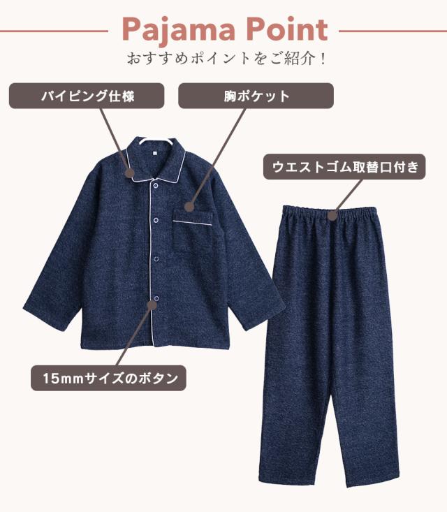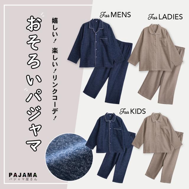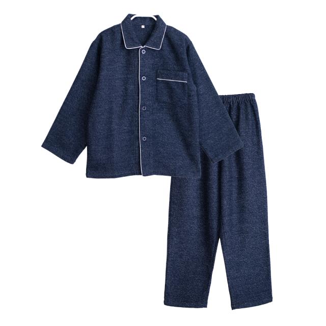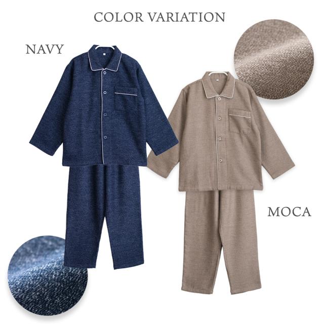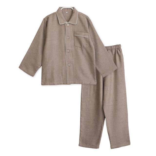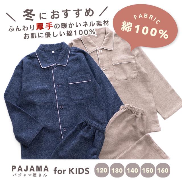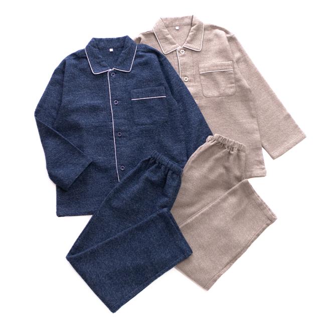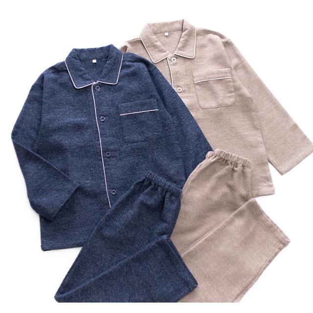 パジャマ キッズ 男の子 女の子 綿100% 長袖 秋 冬 前開き ボタン 二重構造 ふっくら暖かい 柔らかい ネル起毛 先染め 杢調 無地 ネイビー モカ 120 130 140 150 160 子供 ジュニア ボーイズ ガールズ 親子 おそろい リンクコーデ 家族 ギフト プレゼント 91985