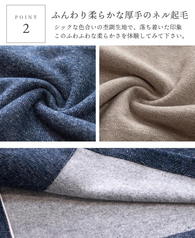 先に染めた糸で織り上げた先染の生地で、外側も内側も細かな起毛があるため保温性があります。