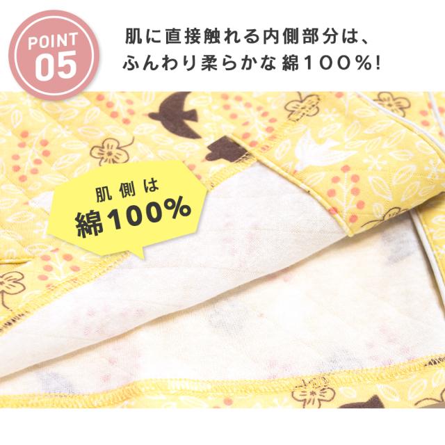 ふっくら柔らかく厚手で保湿性・吸湿性に優れています。 お肌に触れる内側は綿100%なので、優しい肌触りです。