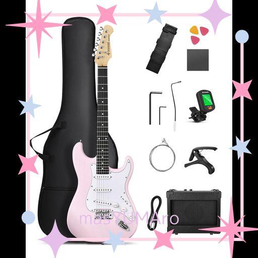 DONNER エレキギター 初心者セット STタイプ SSSピックアップ 39インチ フルサイズ ミニアンプ付き 専用ケースとチューナーなどアクセサリー9点セット DST-80P ピンク